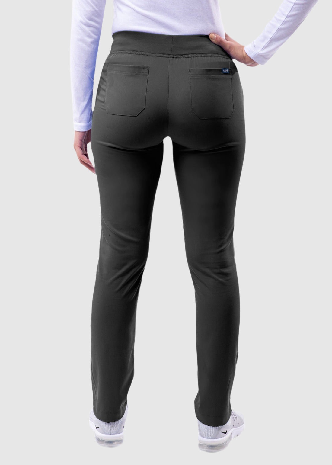 Be at ease all day long with this Pro by Adar Women's Elastic Waistband Skinny P7102P Scrub Petite Pant. The modern flexible pants comes with a flat stretch yoga style pull-on waistband for comfort, while two front slip pockets with 2 interior tech pockets makes storage of essential easier than ever. Special features of this collection includes fluid resistant, stretch fabric super soft body, wrinkle resistant, and odor resistant.