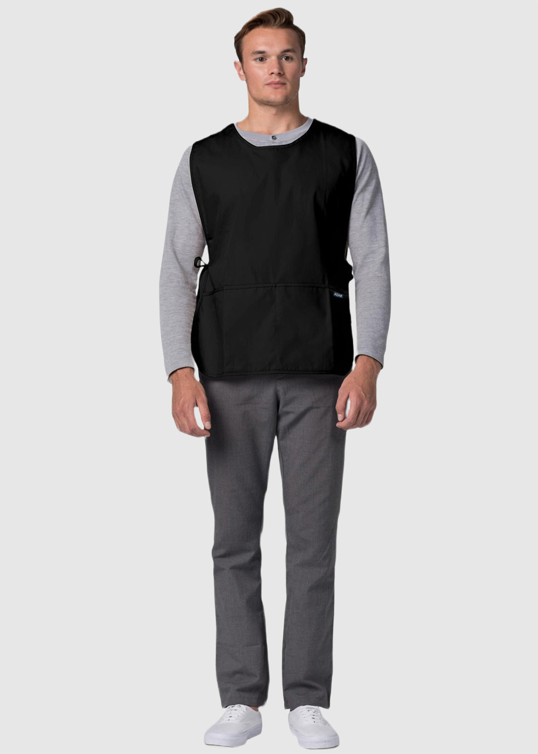 Protect yourself from unwanted spillage with Adar's unisex two pocket bib apron that looks great and functions well. It is composed of soft yet durable fabric, self-trim along the edges adds depth to this workwear while side ties enable you to fasten it at your desired fit. Moreover, full front and back makes it ideal for long shifts.