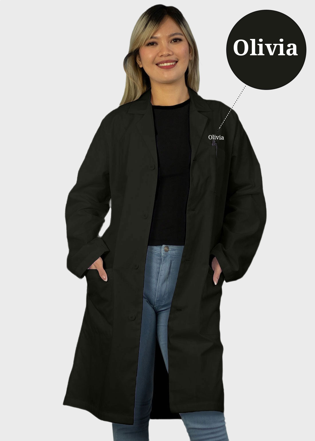 Free Embroidery Unisex 40 Inches Classic Long White Lab Coat