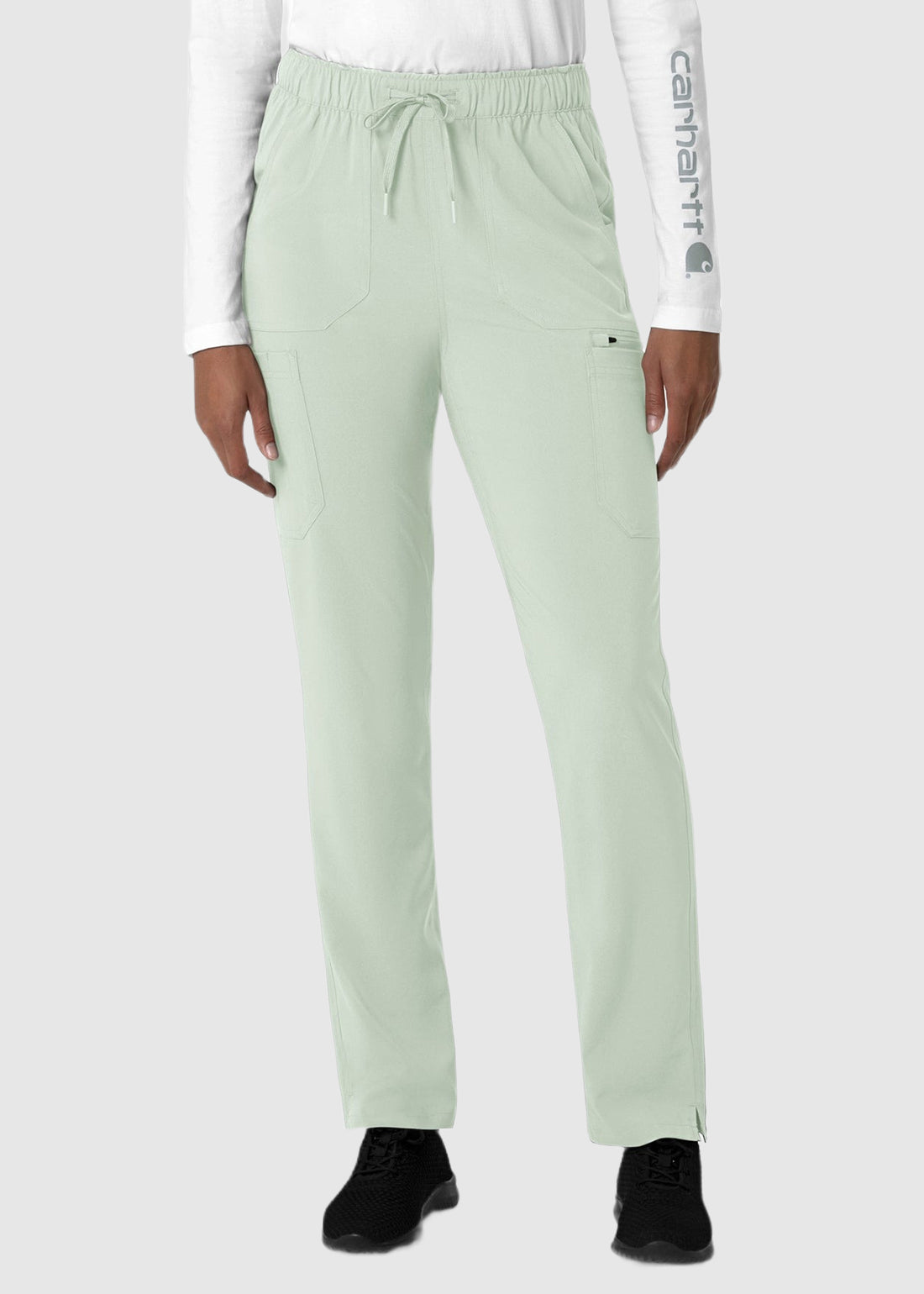 Stay relaxed through the longest of shifts with Carhartt Women’s Straight Leg Cargo Scrub Pants. the modern pants feature a full elastic waistband with drawstring ensures a snug fit with superior comfort. With two deep front slash pockets with inset connections to help keep items from falling out, cargo pocket a wearer's right has a slot for a pen and internal utility loops for other tools and cargo pocket at wearer's left has a secure zip pocket with mesh pocket bag just above the cargo, get safe and secure storage on the go. Completed with vented leg hems, the scrub pants are great value for money.