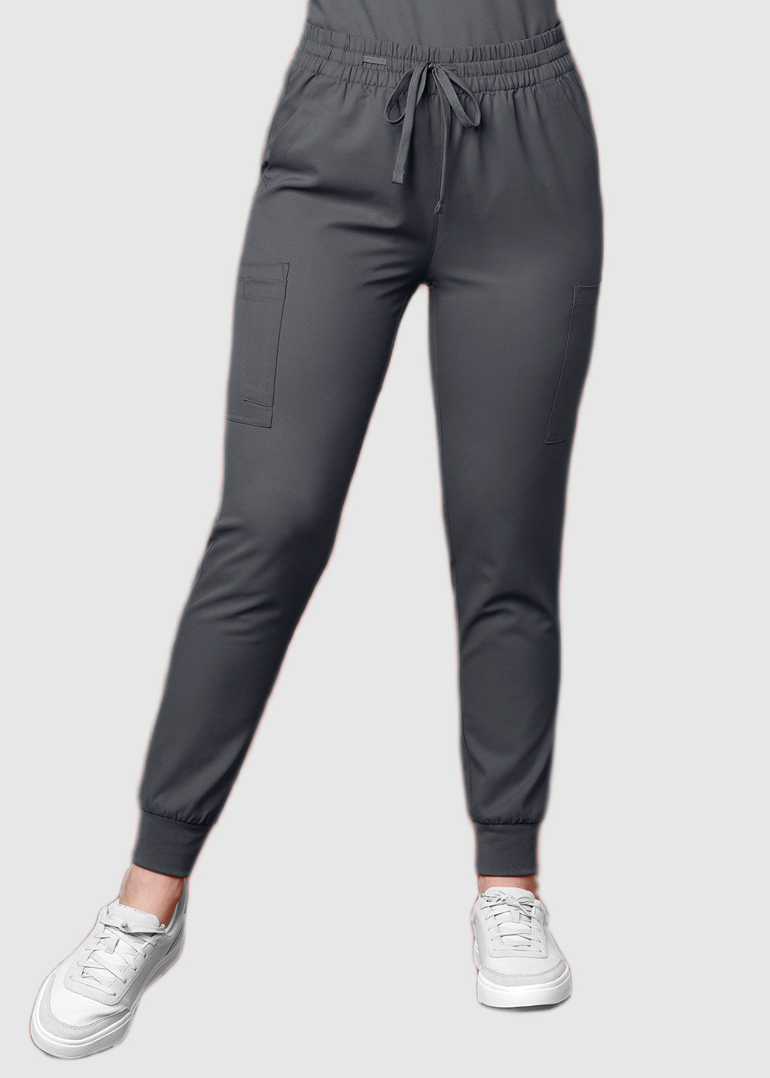 Be at ease all day long with Wink Scrubs Thrive Women Cargo Petite Jogger Pant. The functional pants feature a soft elastic waist with full dyed-to-match drawstring that creates a secret utility loop for your comfort. With durable double-needle stitching and dyed-to-match soft rib-knit cuffs at bottom hem, you get absolute performance. Completed with two front slash pockets, two large cargo pockets with scissor pocket and interior accessory loop, and two large flattering back patch pockets, you get absolute storage on the go.