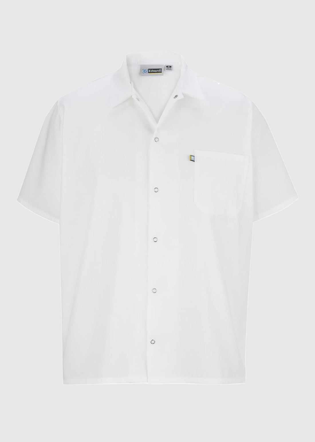 Get absolute performance with Edward Cook Shirt With Snap Closure. The traditional cook shirt and collar is functional and rewarding. Completed with six snaps on placket and short sleeve with left chest pocket, the shirt is all that you need.