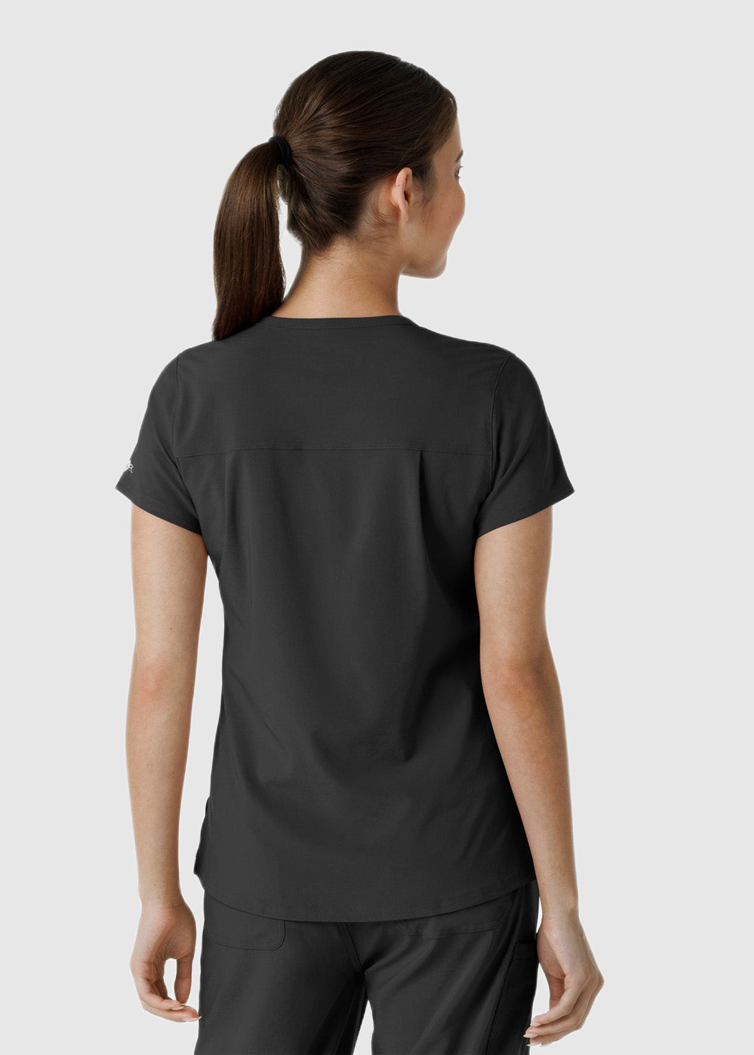 Unmatched comfort meets unstoppable performance, the Carhartt Cross-Flex Force Women's 1-Pocket Stretch Knit Panel Tuck In Scrub Top combines modern fit with unparalleled functionality. The V-neck design and stretch knit panels ensure a sleek, comfortable fit, while the Carhartt-shaped chest pocket adds a practical touch. With short sleeves, a back yoke featuring triple-needle stitching, and pleats for enhanced movement, the scrub top is designed to keep you moving effortlessly through your busiest shifts.