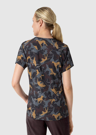 Wink Scrubs Carhartt Women's V-Neck Print Scrub Top in Mustang Meadow