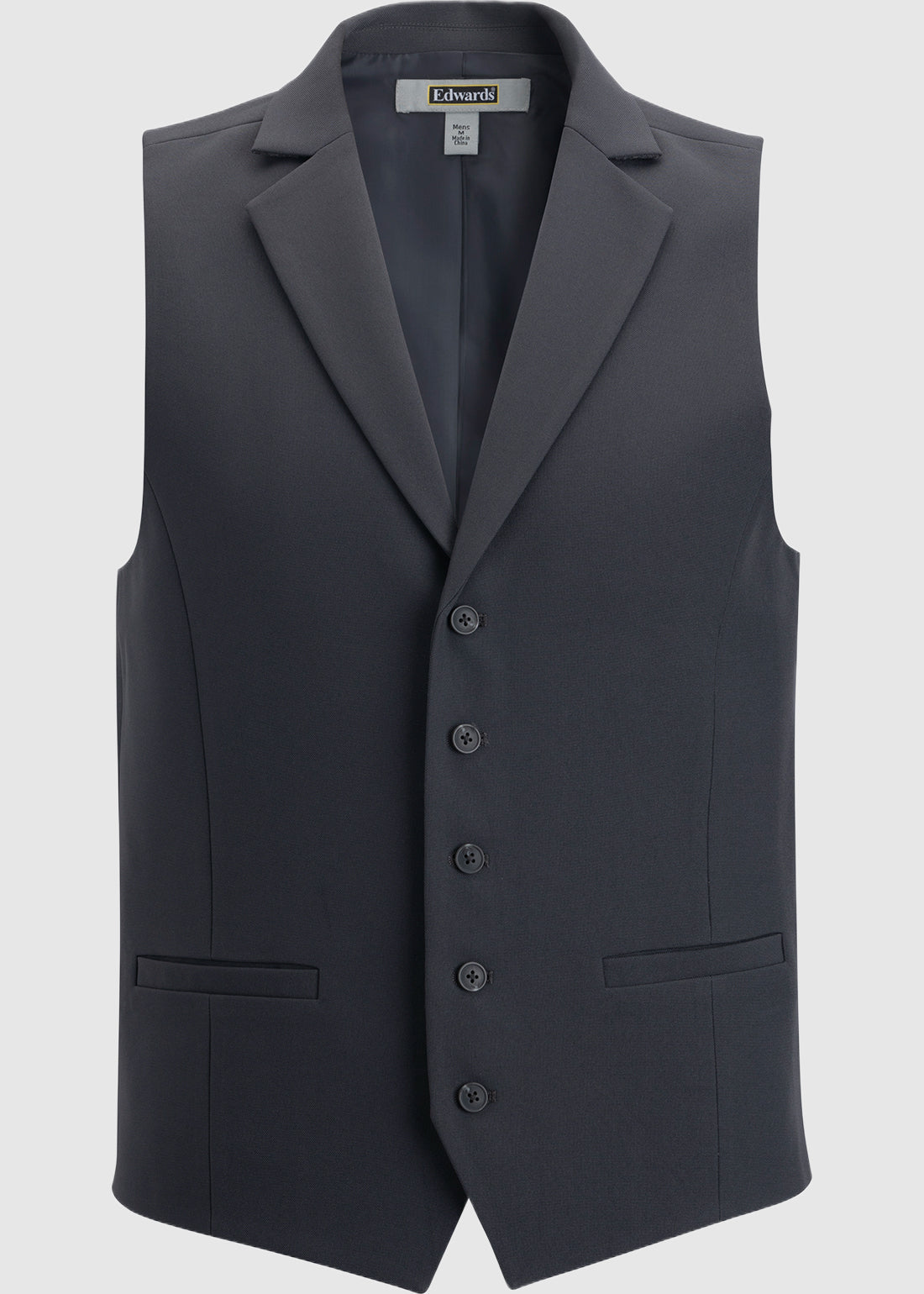 Edwards Men's Dress Lapel Vest (ED-4496), a versatile addition to your wardrobe. This vest features two functional front pockets for practicality and a V-notch bottom detail for a touch of sophistication. With an adjustable back strap, it offers a customizable fit for comfort. Fully lined and crafted from 100% polyester, this vest combines style and durability effortlessly.