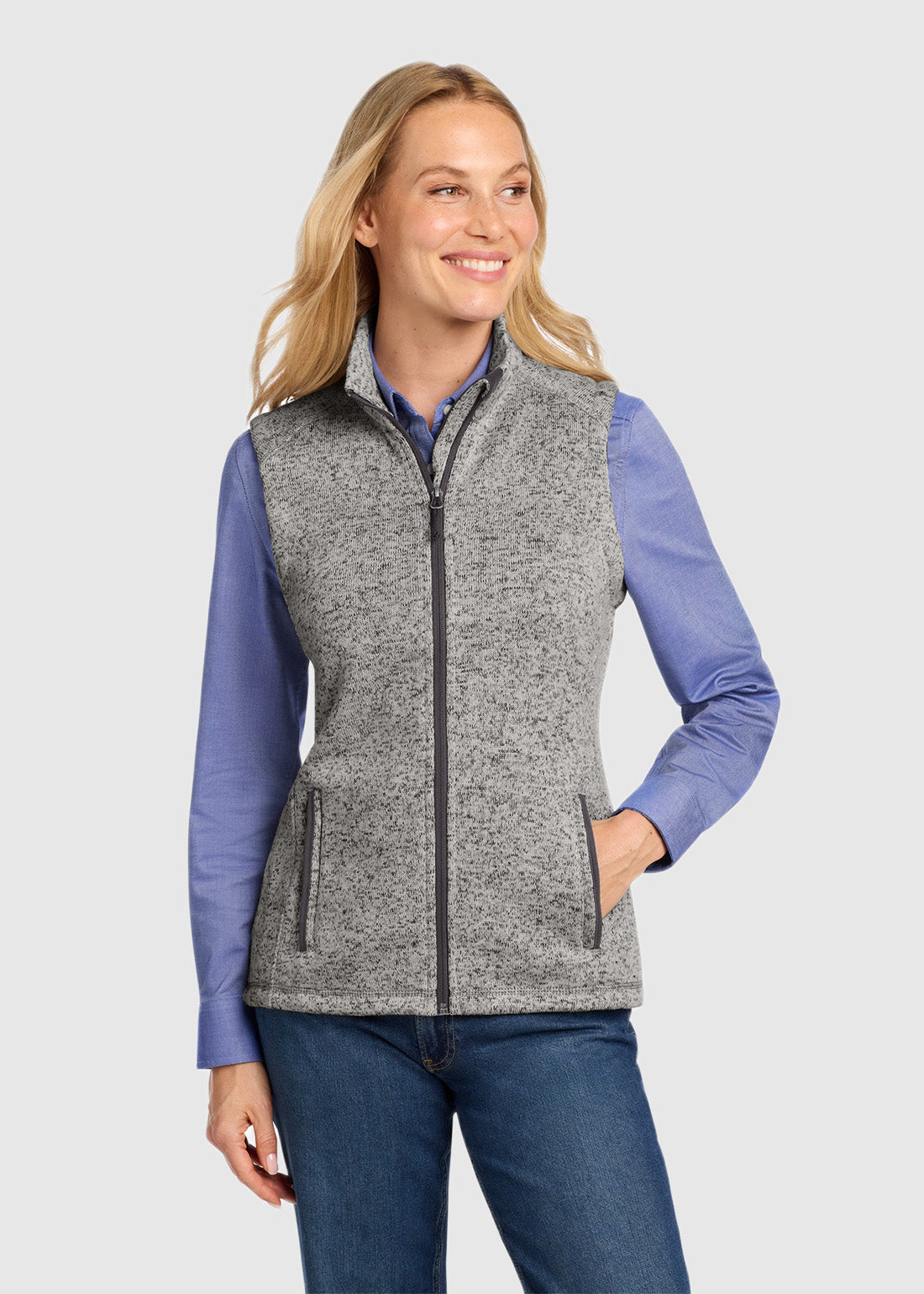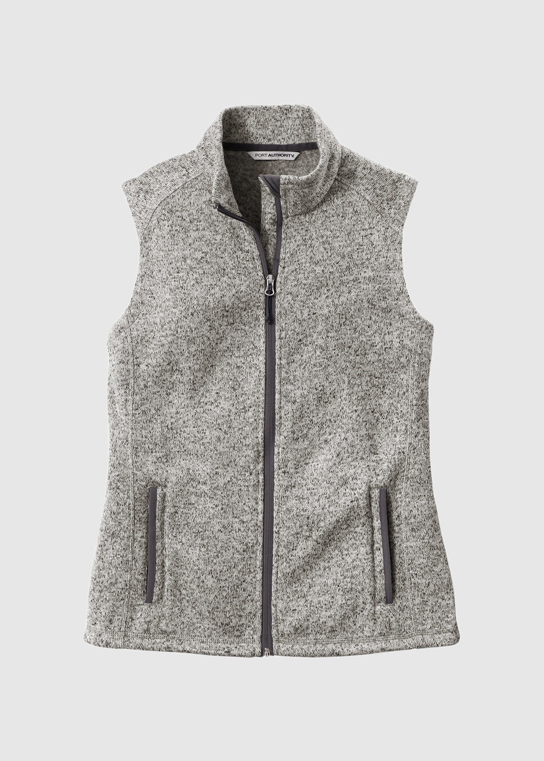 Be smart and make an impression with Port Authority Ladies Sweater Fleece Vest. With a twilltaped neck, reverse coil zipper, chin guard, and fulllength interior storm flap, the vest is absolutely functional. Completed with a front reverse coil zippered pockets with binding trim and knotted zipper pulls, you get quality with comfort.