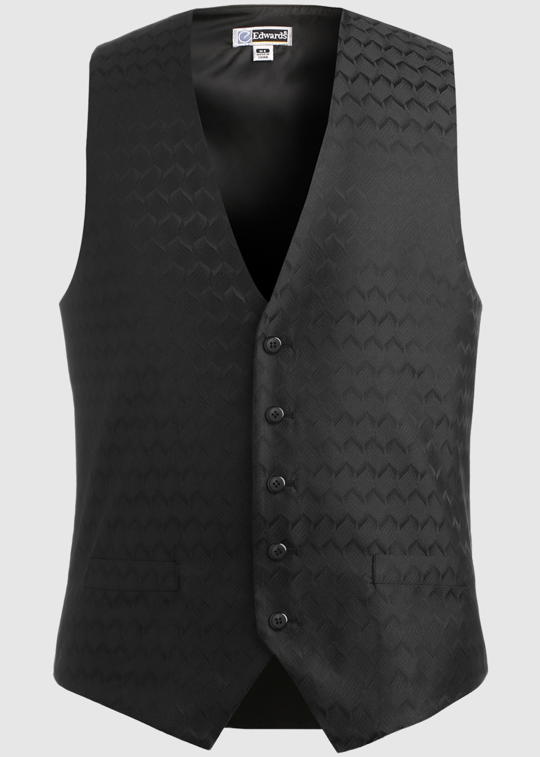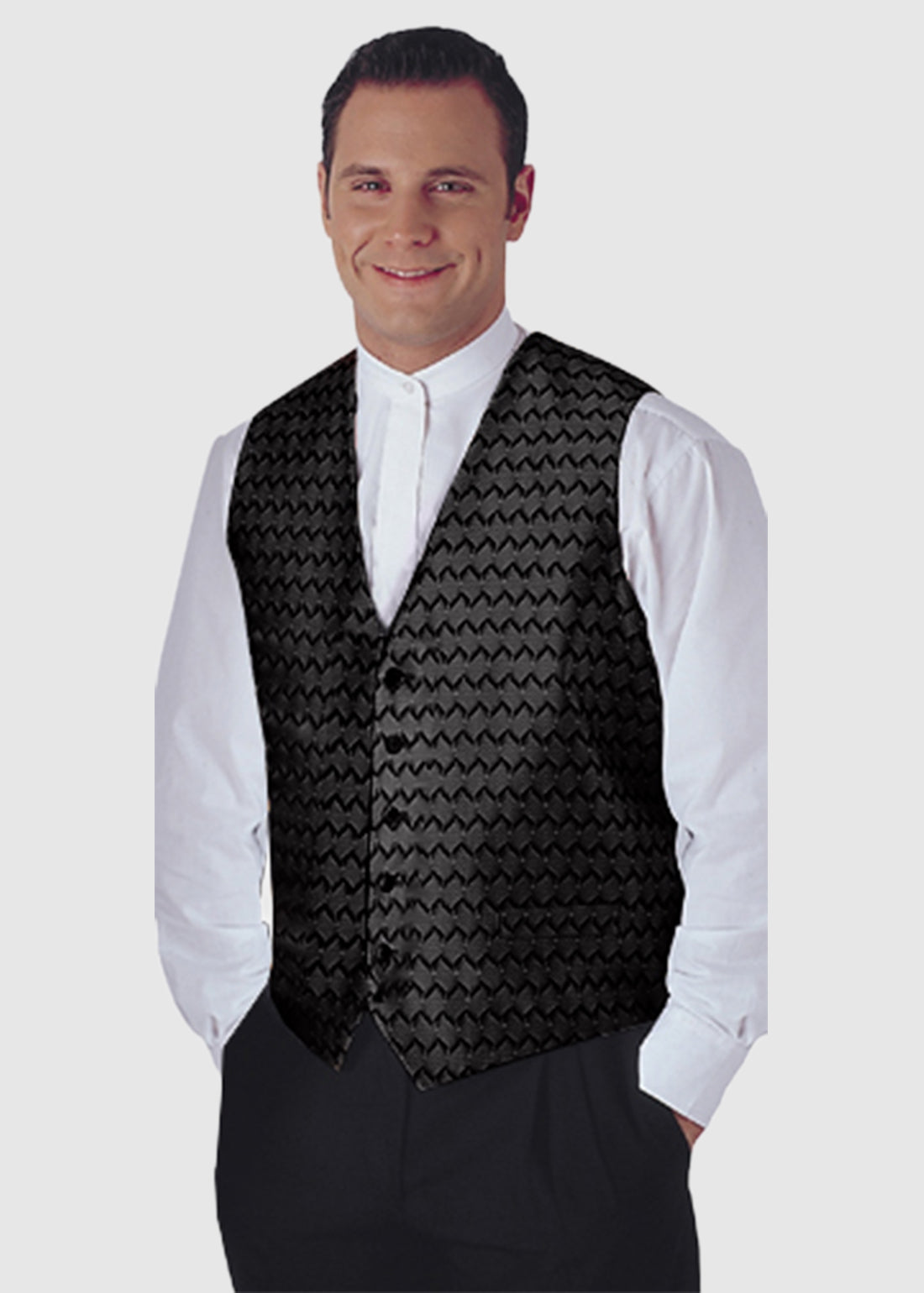 Performance and comfort go hand in hand with Swirl Brocade Vest. The V-neck vest with swirl brocade pattern looks impressive. The black buttons on placket, two non-functional welt pockets and two inside lining pockets, you get secure storage and superior performance.