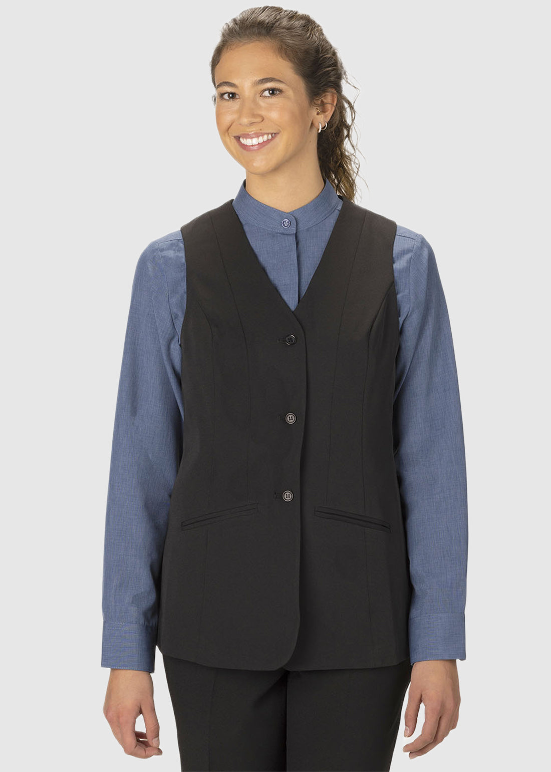 Look impressive and feel great in Firenza Sleeveless Tunic. The V-neck jacket tunic offers flattering silhouette. With a coat-like design with tailored princess seams, 3-Button placket, rounded hem and angled welt pockets, look trendy and feel great.