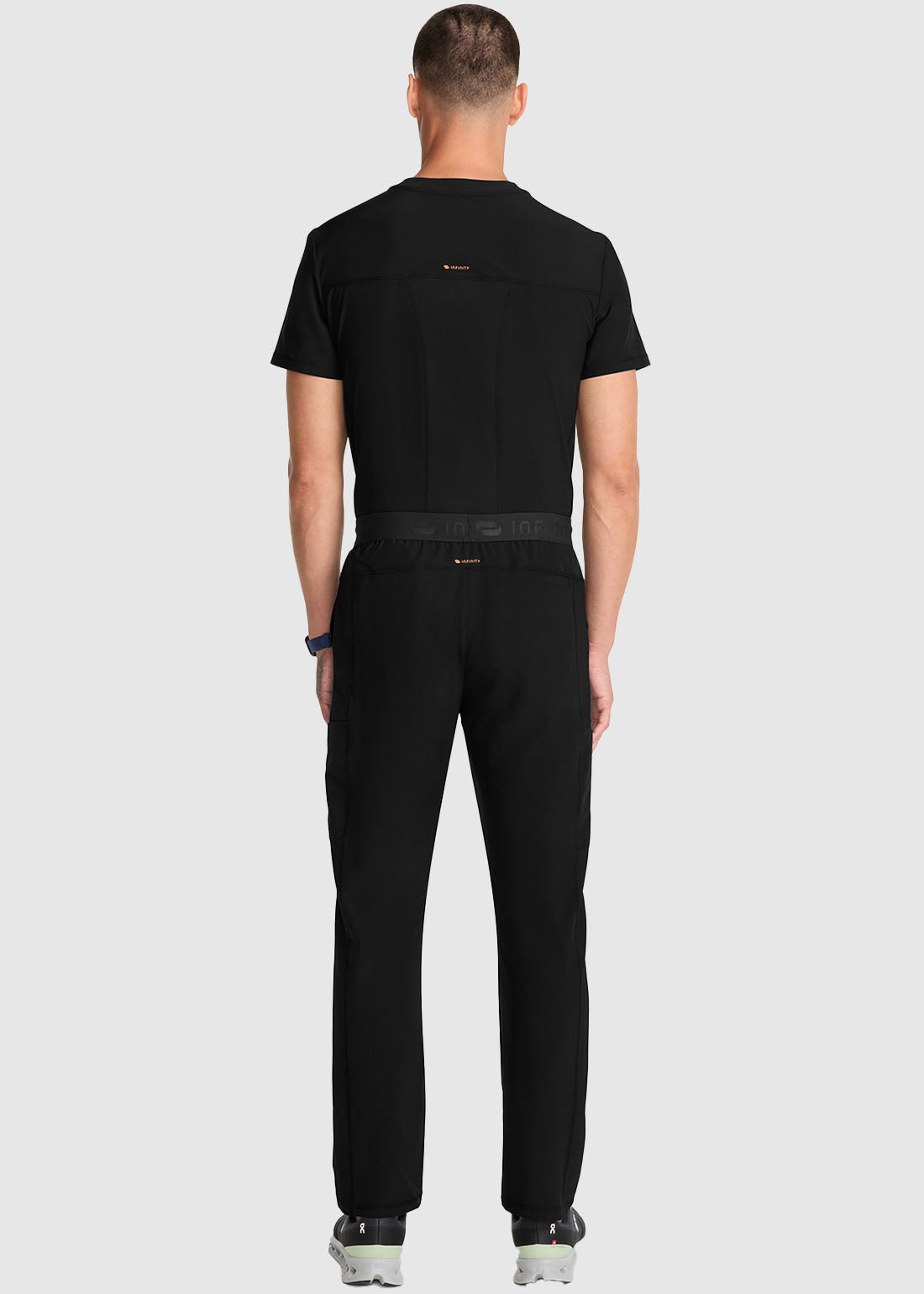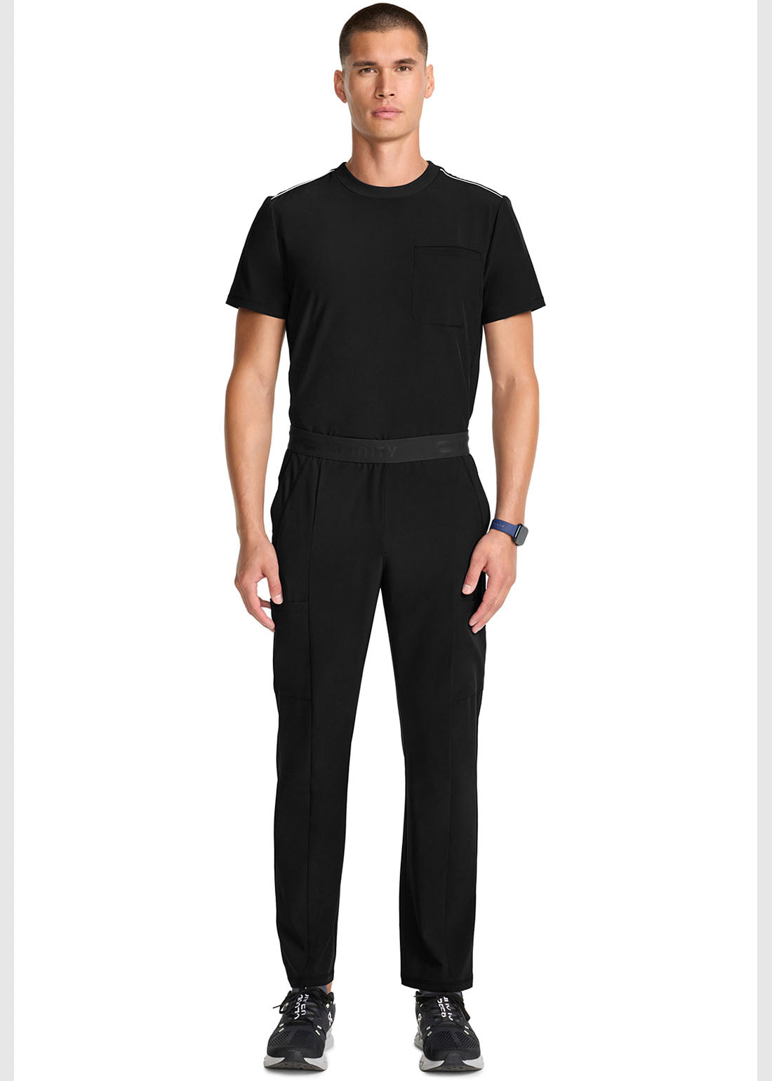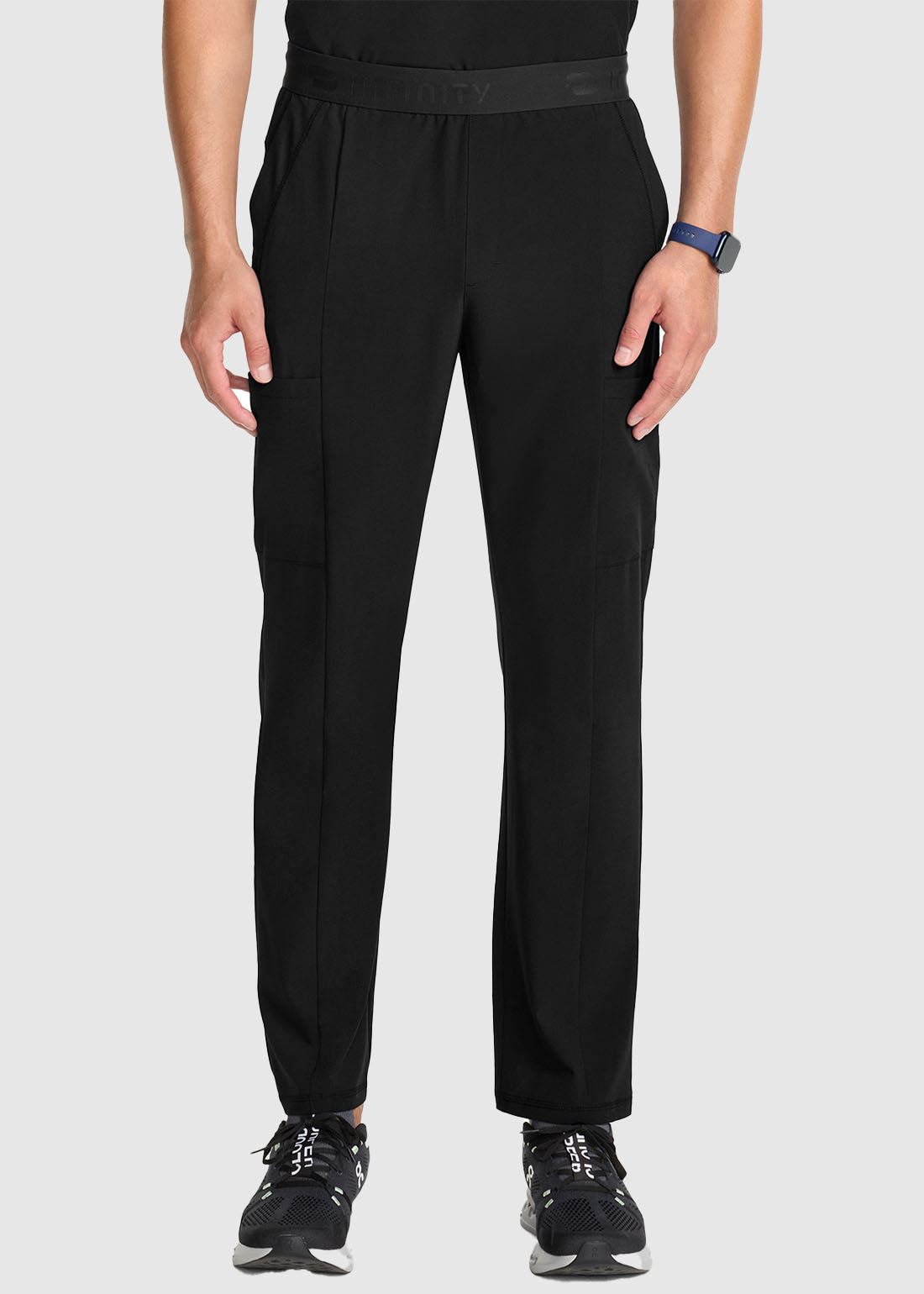 Men's Straight Leg Pant offers a sleek and functional design with a contemporary fit. Featuring an elastic waist with rib-knit details for comfort, it includes five pockets—front angled pockets, a back pocket, and cargo pockets on both legs—for convenient storage. Front leg seams add a polished touch.