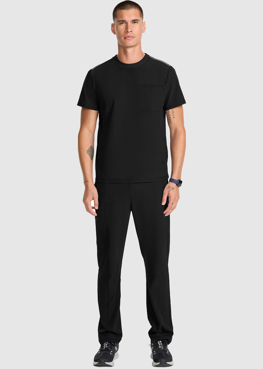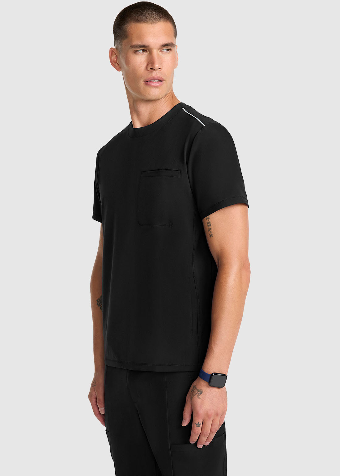 Men's Tuck-in Crew Neck Top offers a sleek, contemporary fit with both style and functionality. Designed with rib-knit details, back side panels, and a front shoulder yoke, it ensures comfort and mobility. Three pockets, including a chest pocket and side entry pockets, provide convenient storage for essentials.