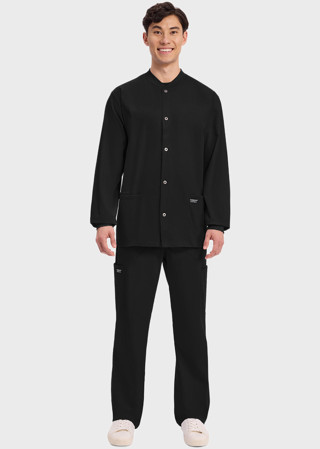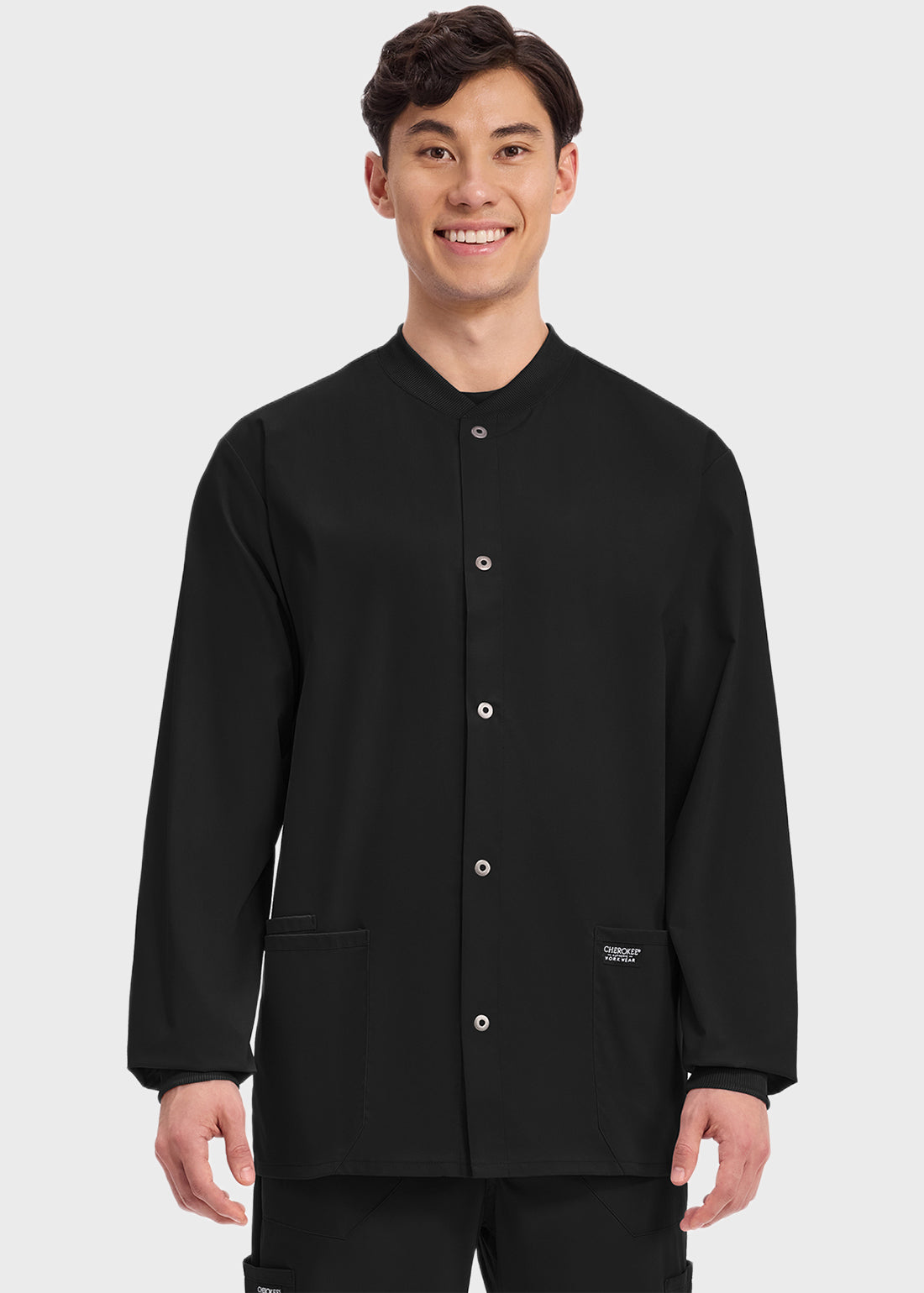Layer up comfortably in Cherokee Workwear scrub jacket. The long sleeve scrub jacket will keep you comfy all day long. Known for its stylish accents, the jacket is a keeper.