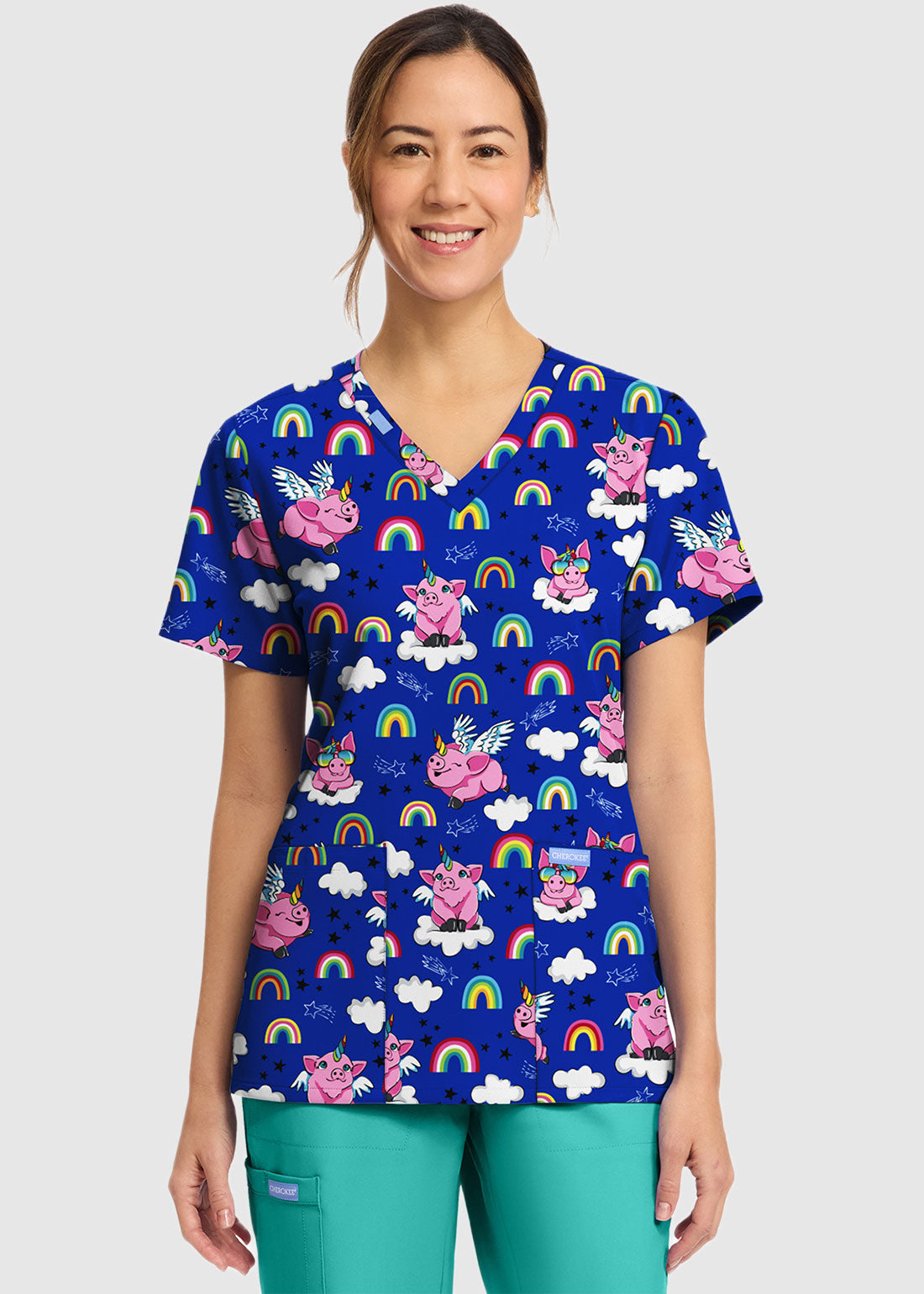 Women's Print V-Neck Top in Flyin' Magic adds a cheerful touch to your workwear. Designed with a modern classic fit, it features two patch pockets for storage and side vents for ease of movement, ensuring all-day comfort and style