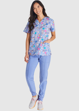 Cherokee Women's Dental Affirmations Print V-Neck Scrub Top