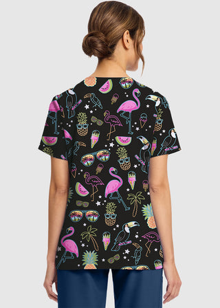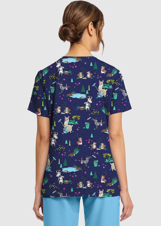 Cherokee Genuine Women's Alpacalypse Print V-Neck Scrub Top