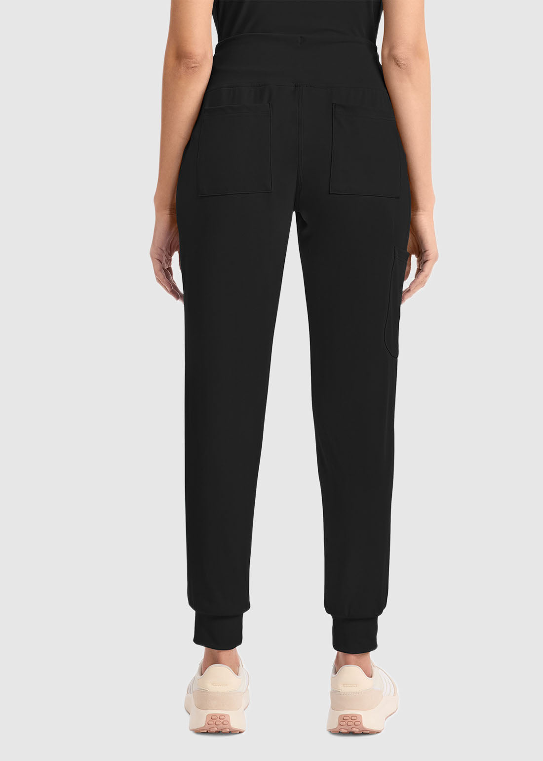 Cherokee Pull-on Women's Jogger Pant Combining comfort and function, these mid-rise jogger pants feature an adjustable waist and five practical pockets—including cargo, angled slit, and back patch pockets. Perfect for staying stylish and organized throughout your shift.