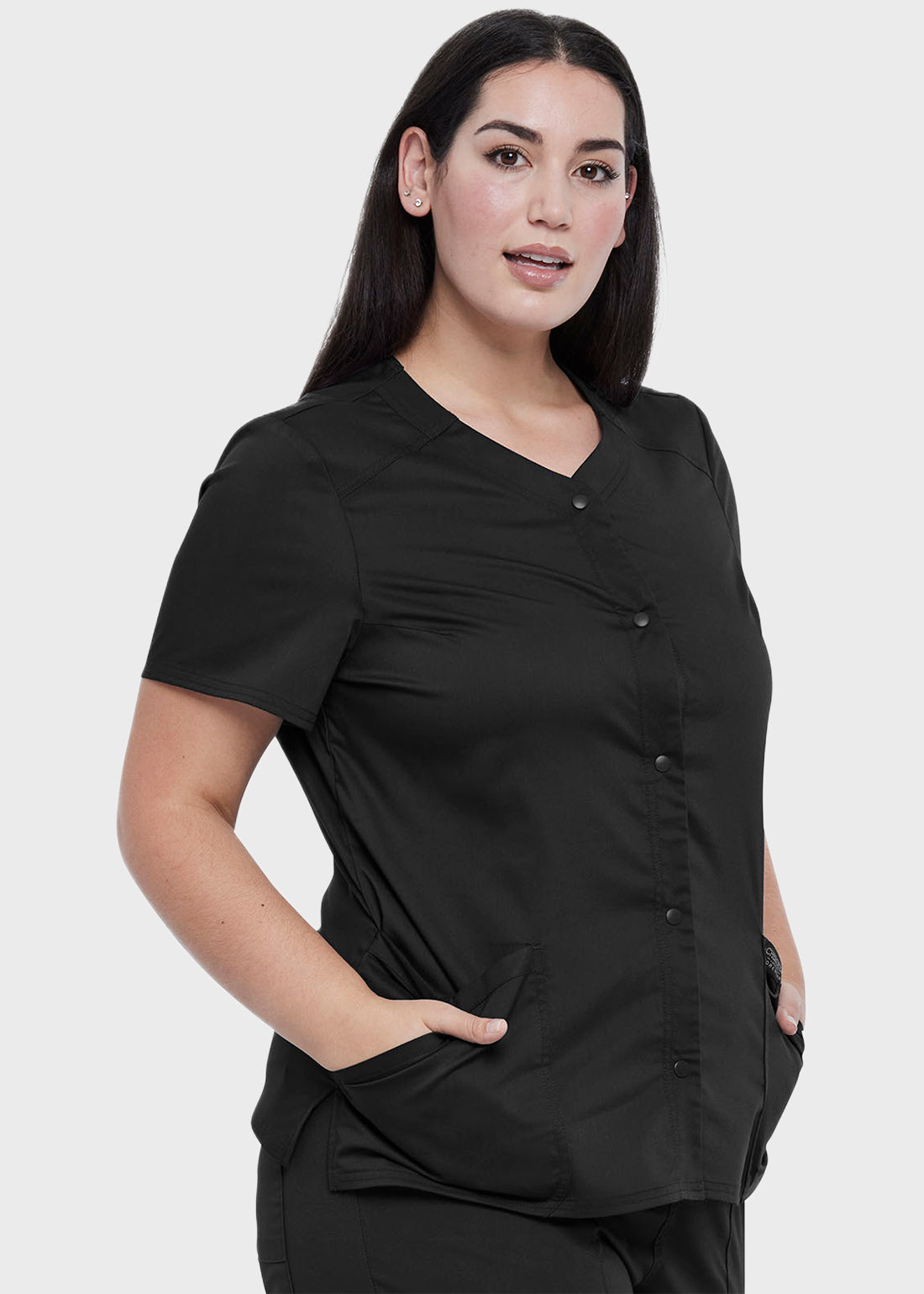 Cherokee Workwear Revolution Women's Snap Front V-Neck Top