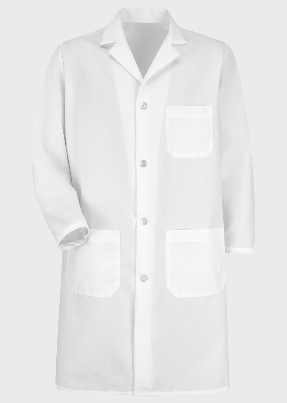 Experiment with ease in Red Kap men's 41.5-inch lab coat featuring a classic notched lapel collar and four-button closure. With three roomy pockets, two lower patch pockets and a left chest pocket; carry your supplies with ease. The long sleeve lab coat with side vents ensures comfort and durability.