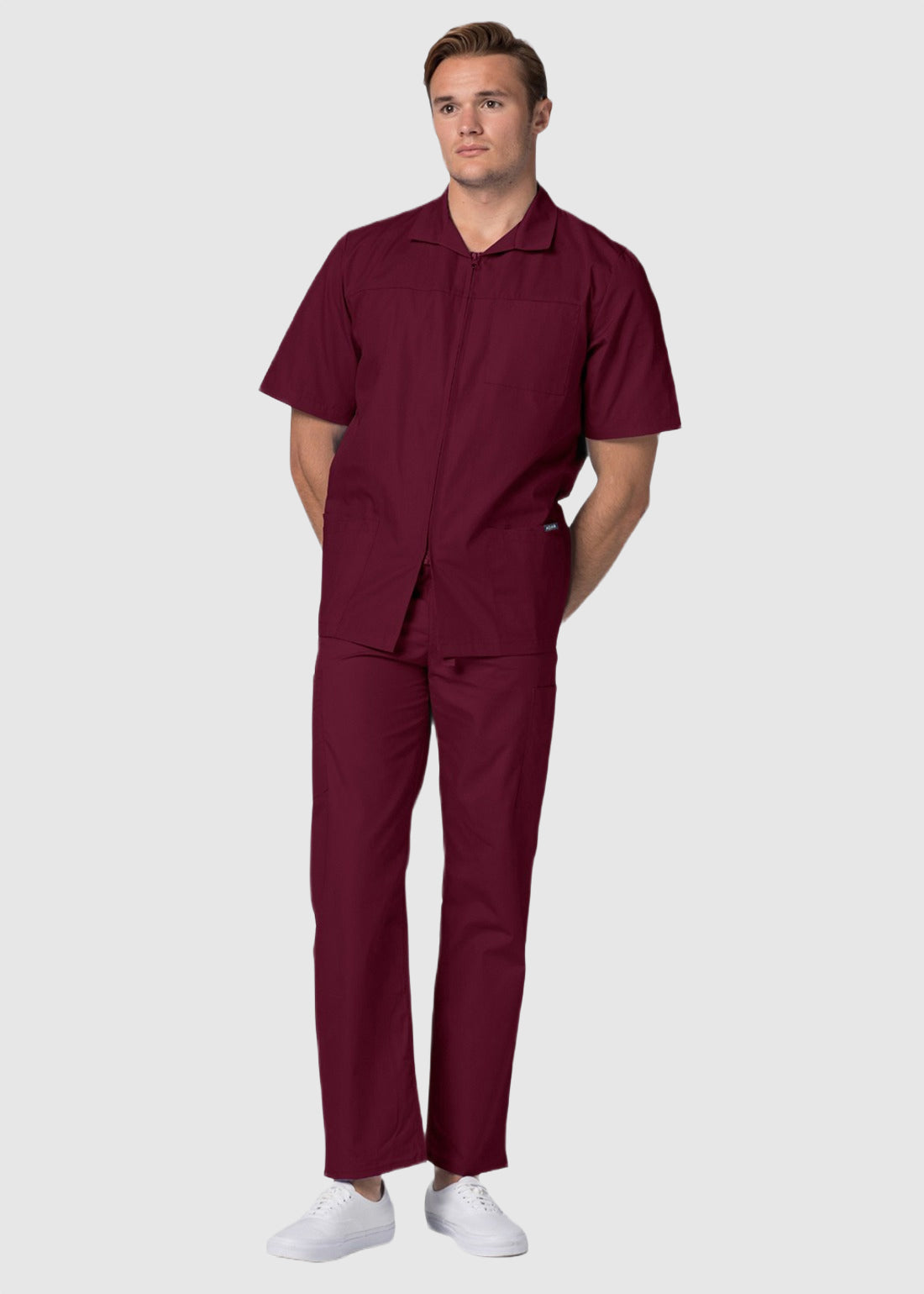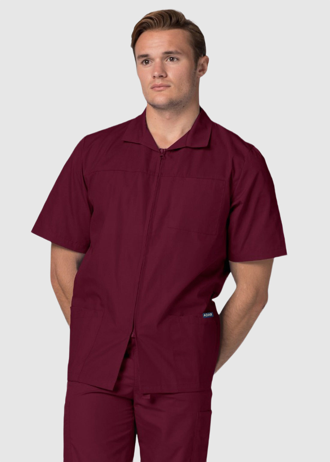 Dress fashionably and feel at ease with Adar 607 short sleeve scrub jacket. The zip up scrub jacket is easy to wear. With its spacious pockets, the jacket is a must have.