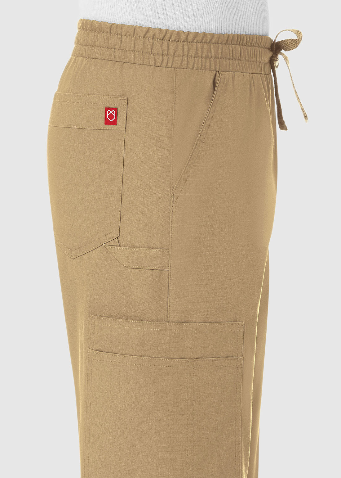 The men's scrub pant from Maevn is all about staying organized. It features a zipper fly with button closure to add convenience, half elastic waistband for an adjustable fit, a natural rise and tapered leg for a contemporary feel and side panels for easy movement. Featuring seven pockets; two front side entry slip pockets, two cargo patch pockets, one mesh pocket with twill tape on the right, two back patch pockets clearly tell how this pant is all about storage for your medical essentials. Lastly, the half elastic waistband for an adjustable fit completes the look.