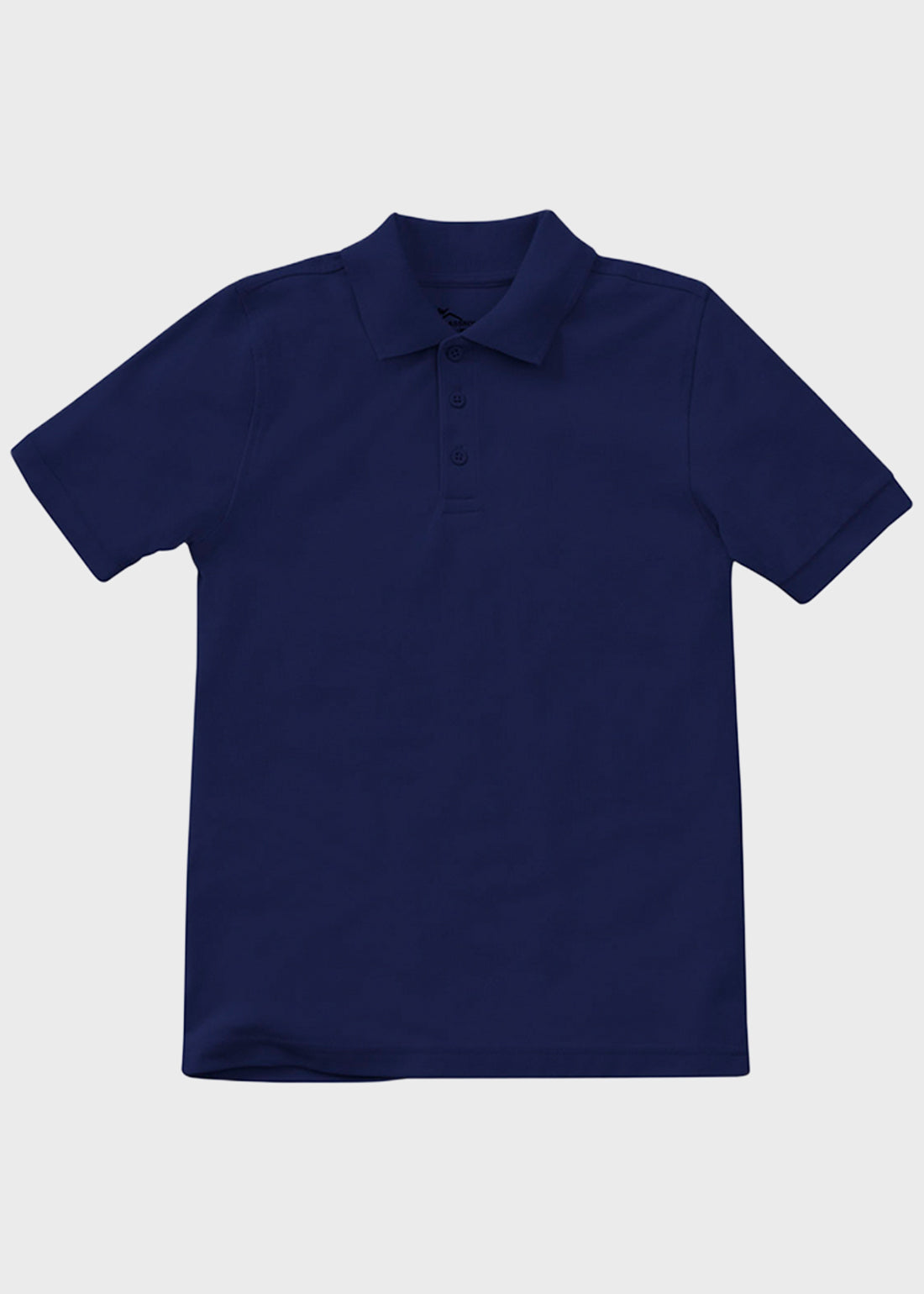 Classroom Adult Unisex Short Sleeve Pique Polo In Dark Navy Features A Combed Cotton/Poly Blend With A Matching Ribbed Collar And Banded Sleeves. It Includes A Three-Button Placket, Reinforced Shoulder Seams, And Double-Needle Hem, Crafted From 60% Cotton / 40% Polyester For Durability And Comfort, Ideal For Versatile School Attire.