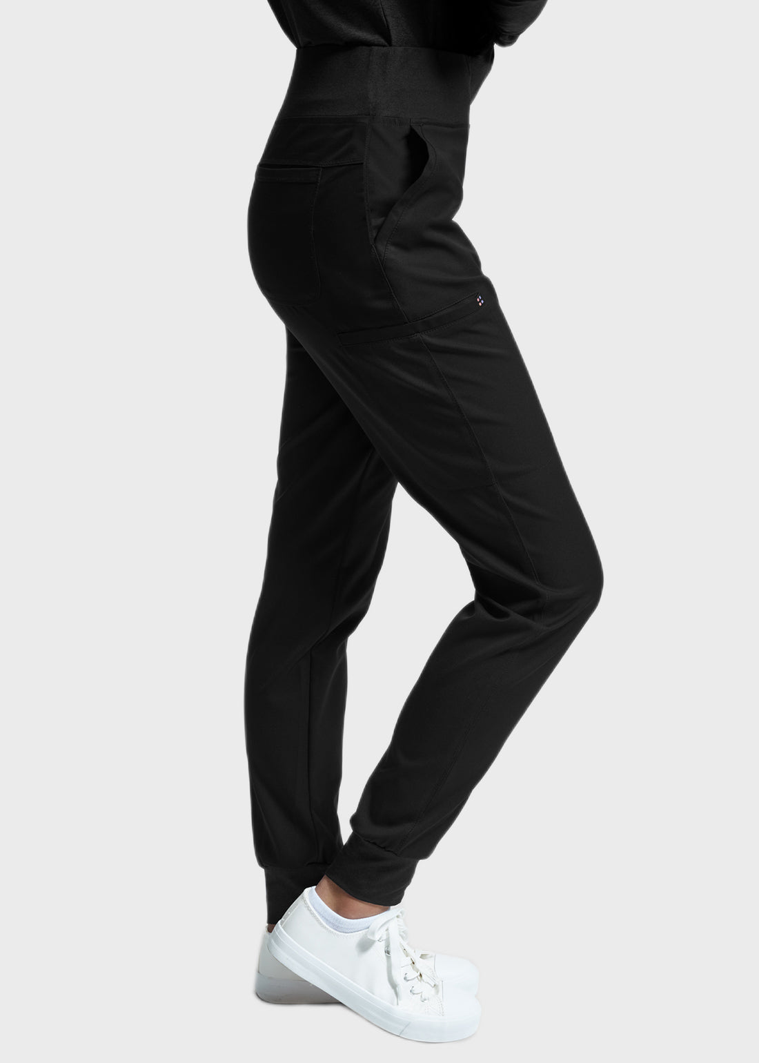 Trendy and functional joggers for women, these pants promote a sporty design and a relaxed fit, providing a modern and comfortable alternative to traditional joggers. The cozy knitted waistband and cuffs not only offer a secure fit but also allow healthcare professionals to move freely while upholding a polished appearance. With a total of six pockets, these joggers combine style, comfort, and practicality.
