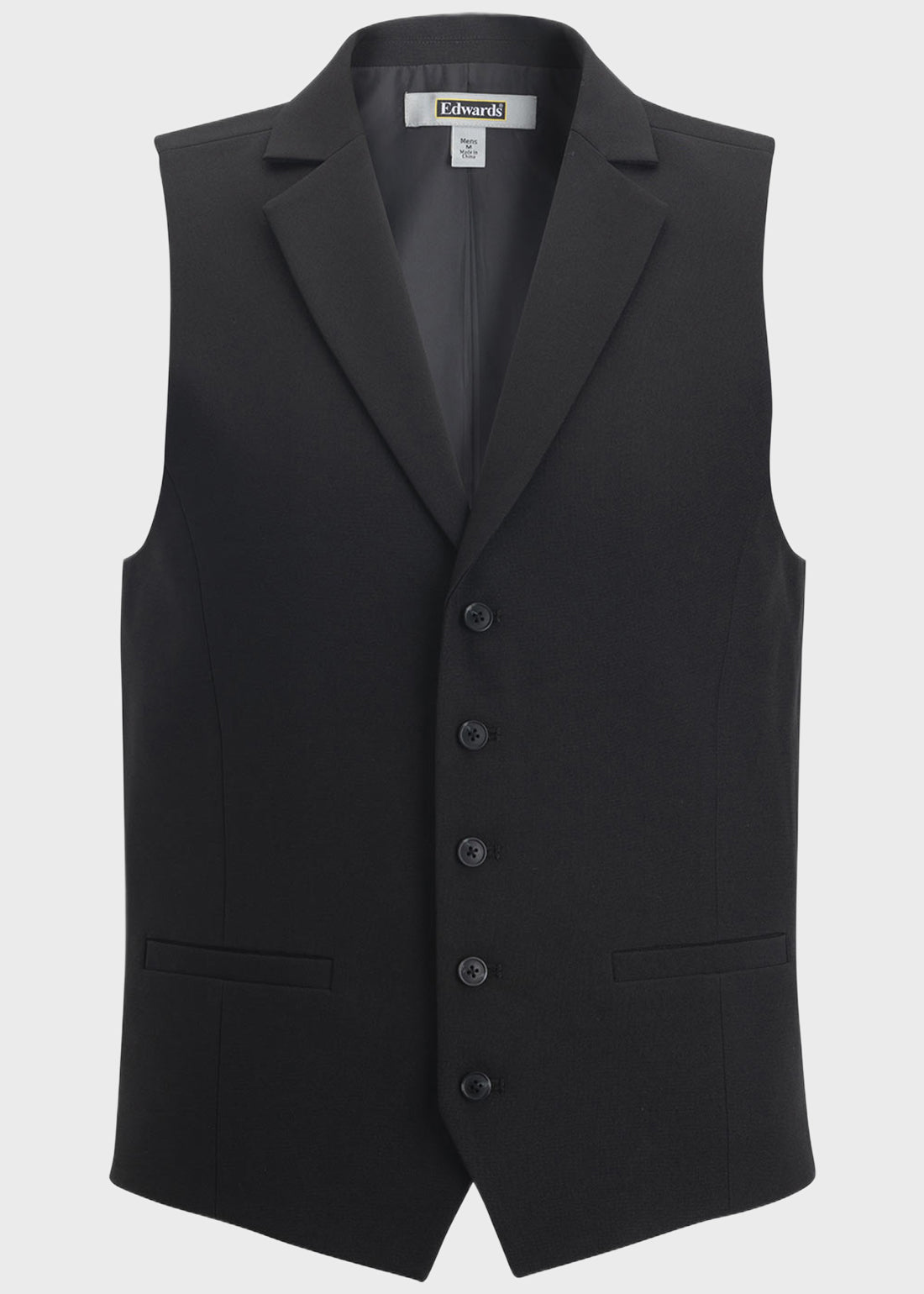 Edwards Men's Dress Lapel Vest (ED-4496), a versatile addition to your wardrobe. This vest features two functional front pockets for practicality and a V-notch bottom detail for a touch of sophistication. With an adjustable back strap, it offers a customizable fit for comfort. Fully lined and crafted from 100% polyester, this vest combines style and durability effortlessly.