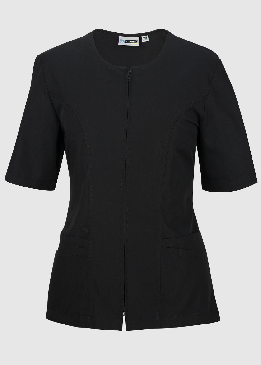 Be on top of your game with Edward Essential Zip-Front Housekeeping Smock. With a jewel neckline, princess seams and set-in half sleeves, get ultimate performance. With four large top entry pockets with pencil track on left side, key ring loop, nylon zipper and side vents at hem for movement ensures functionality and performance.
