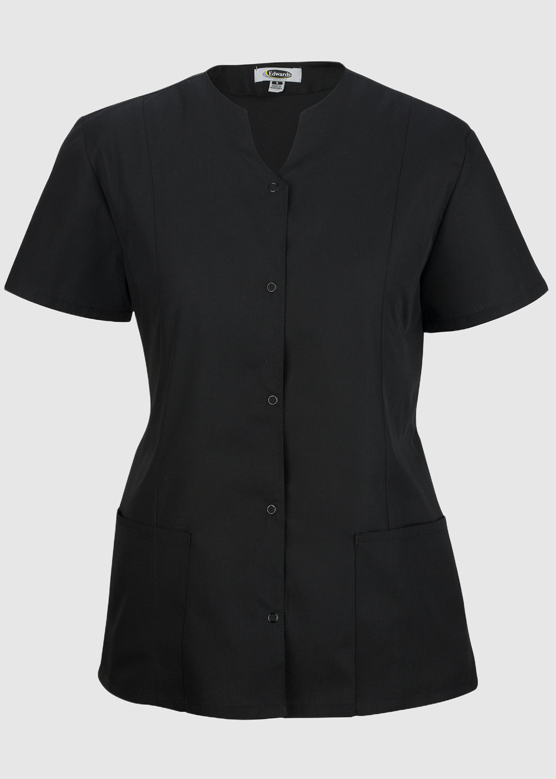 Look good and feel great in Edward Essential Snap-Front Housekeeping Smock. With a notch v-neckline and princess seams, get an impressive look. With a set-in short sleeves, two large patch pockets and side vents at hem for movement, be at ease all day long.