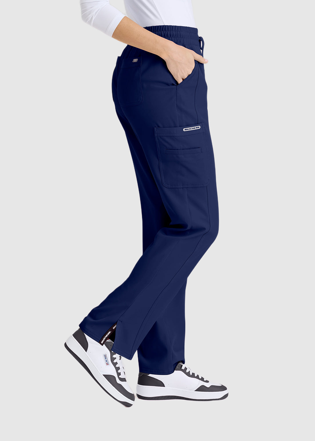 Effortless, comfortable and stylish – the Skechers Scrubs Gamma 6-Pocket Elastic Petite Waistband Cargo Pant. With a plethora of pockets, the pants feature ankle vents with log tape trim inside, elastic waistband with drawstring for comfort and six pockets including two front slash pockets, right double cargo pocket, and two back patch pockets, the cargo pants are great value for money.