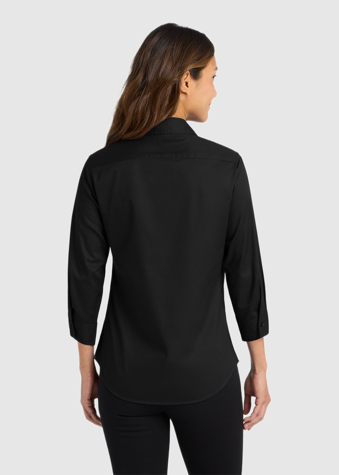Transition from work to lounging with Port Authority Ladies Three Quarter-Sleeve Easy Care Shirt. With an open collar, dyed-to-match buttons, and adjustable cuffs, the shirt offers functionality on the go.