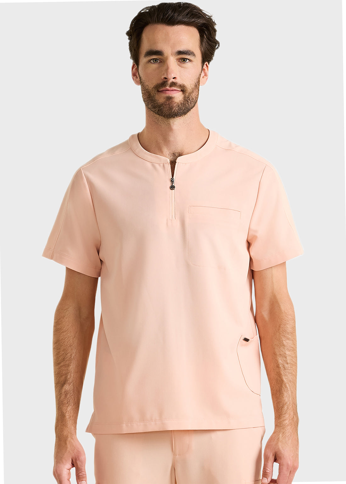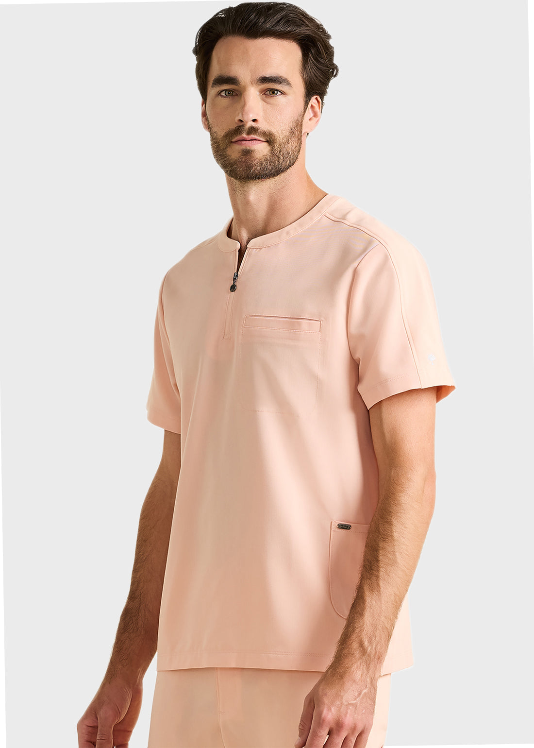 Look professional and feel great in Dr. Kwane x Healing Hands Men's Victor Quarter Zip Scrub Top. With a sleek quarter zip neckline and short sleeves, it offers both style and functionality. Stay organized with two convenient pockets, including a practical welt chest pocket and a side pocket. Engineered with racer-style sleeve panels and side vents, it ensures maximum mobility and breathability. Plus, with a pet hair resistant finish and PROTX2® fabric technology battling odor, it's the epitome of comfort and efficiency.