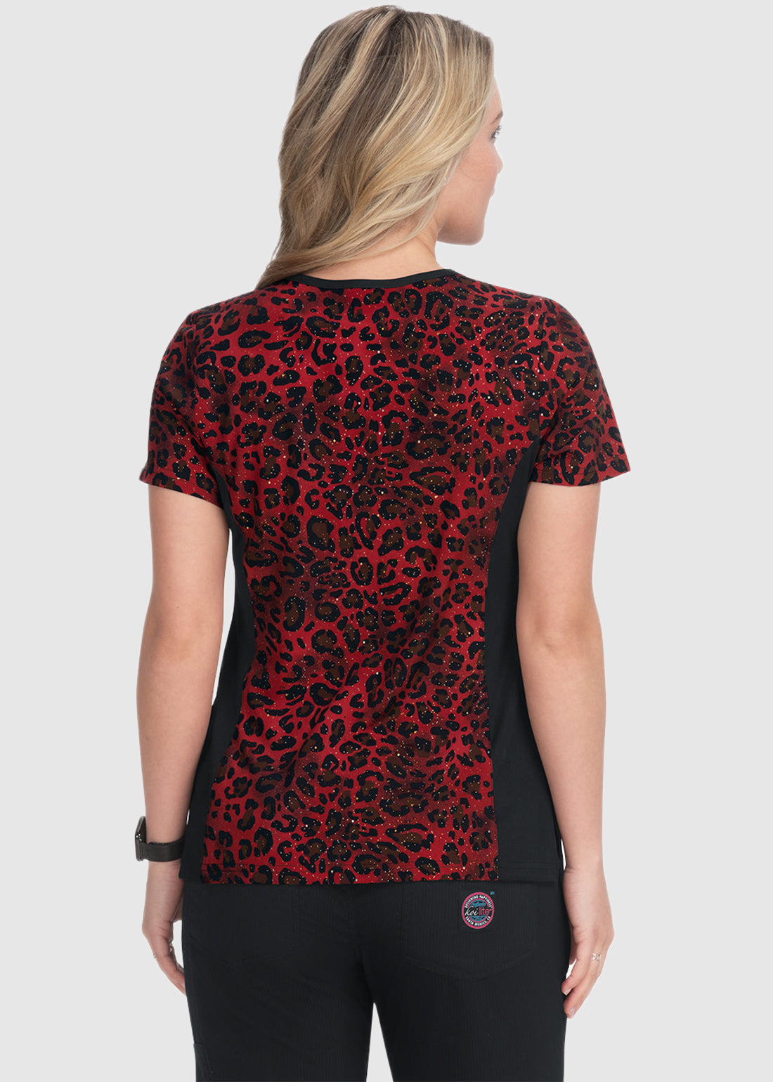 Koi LIte Raquel Women's Holiday Cheetah Foil Stretch Print Scrub Top