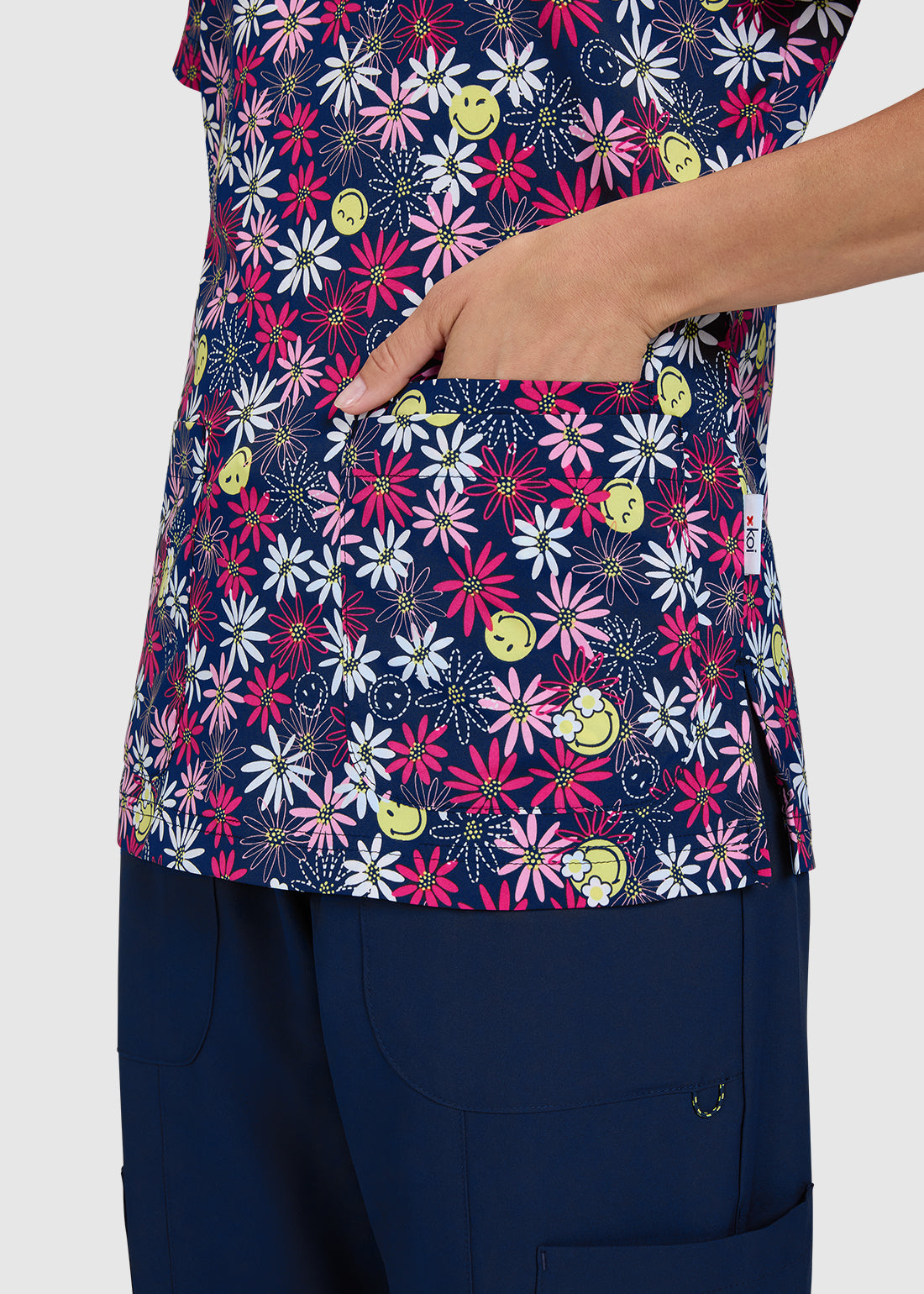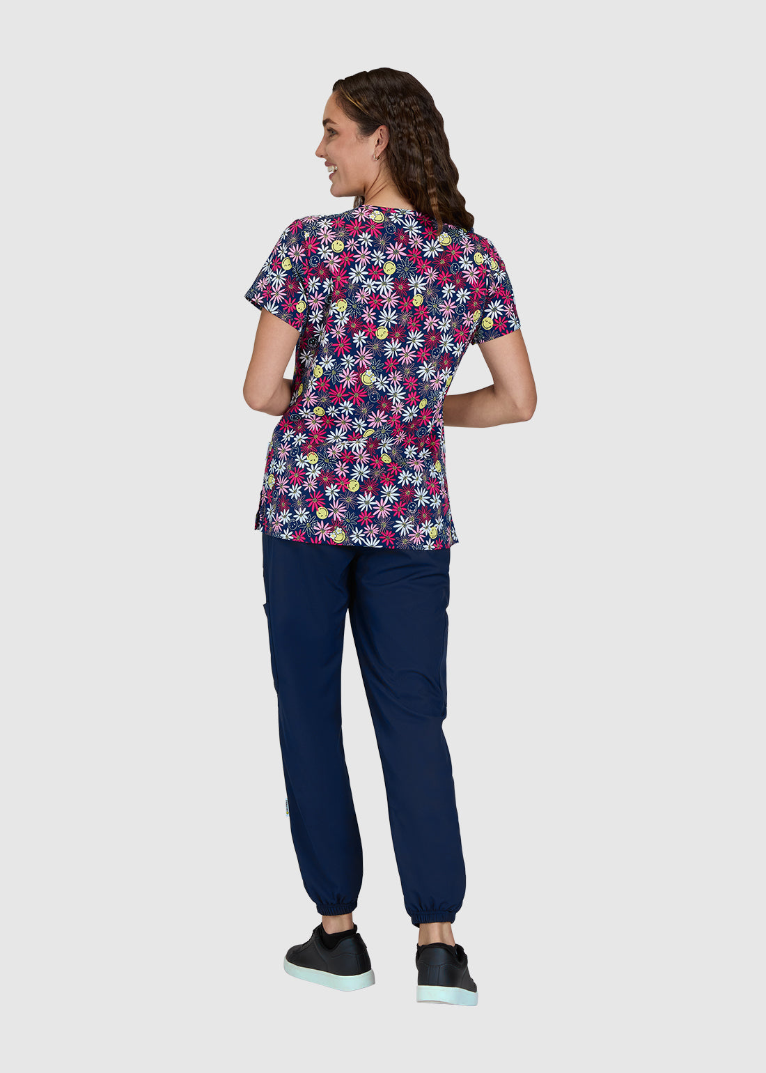 Koi SmileyWorld Adoring Women's Smile Daisy Print Scrub Top
