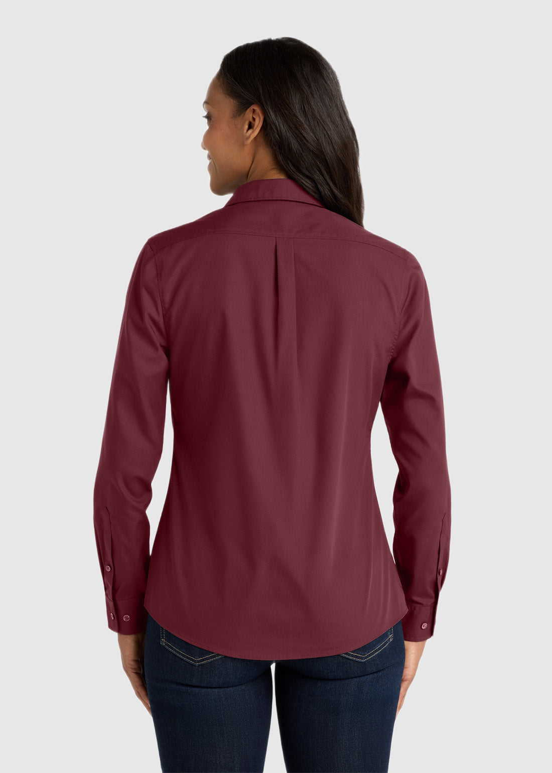 Look effortless in Port Authority Ladies Long Sleeve Carefree Poplin Shirt. With dyed-to-match buttons, open collar, bust darts, back box pleat and rounded adjustable cuffs, you get style, quality, durability and comfort within your budget.