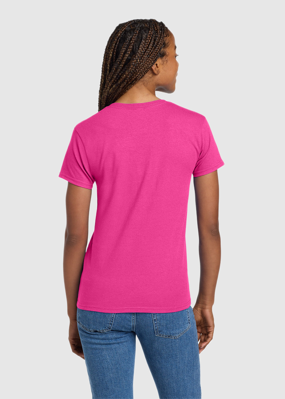 Get the look with Gildan Ladies Ultra Cotton 100 Cotton TShirt. With a seamless doubleneedle 58 inch collar, doubleneedle sleeves and hem, taped neck and shoulders, feminineinspired styling and side seam, you get optimal performance on the go.