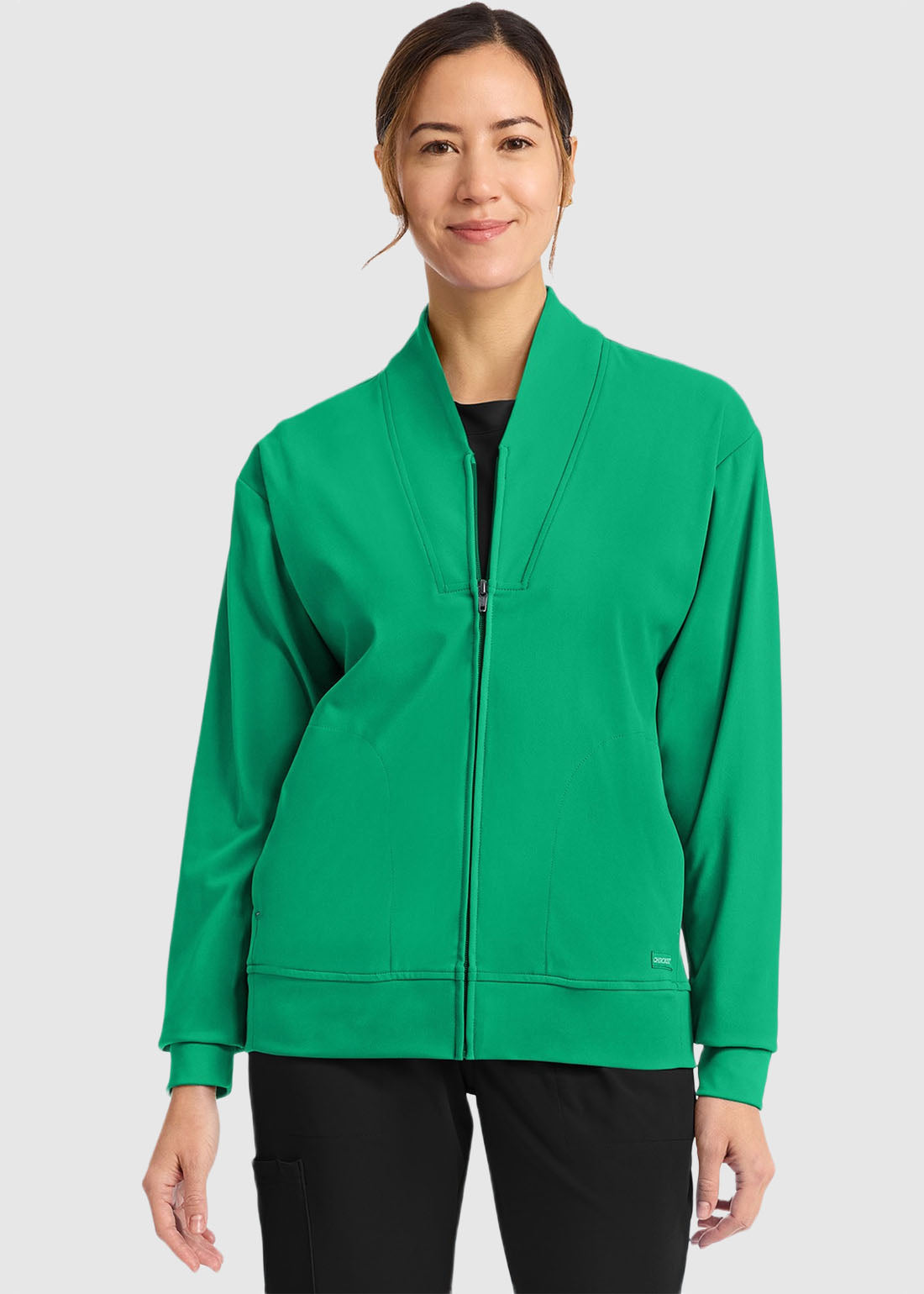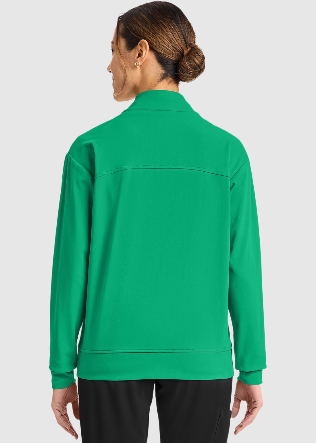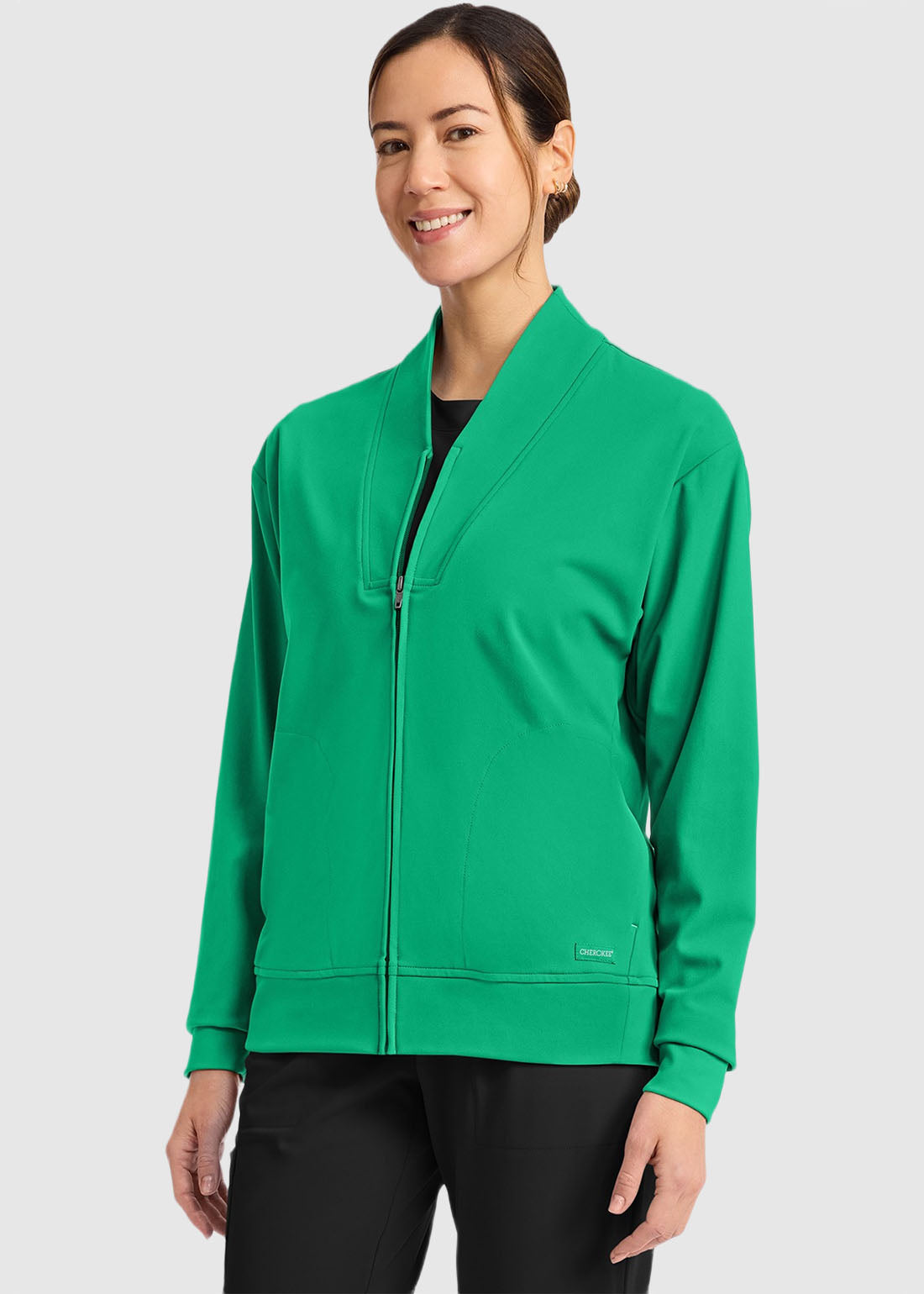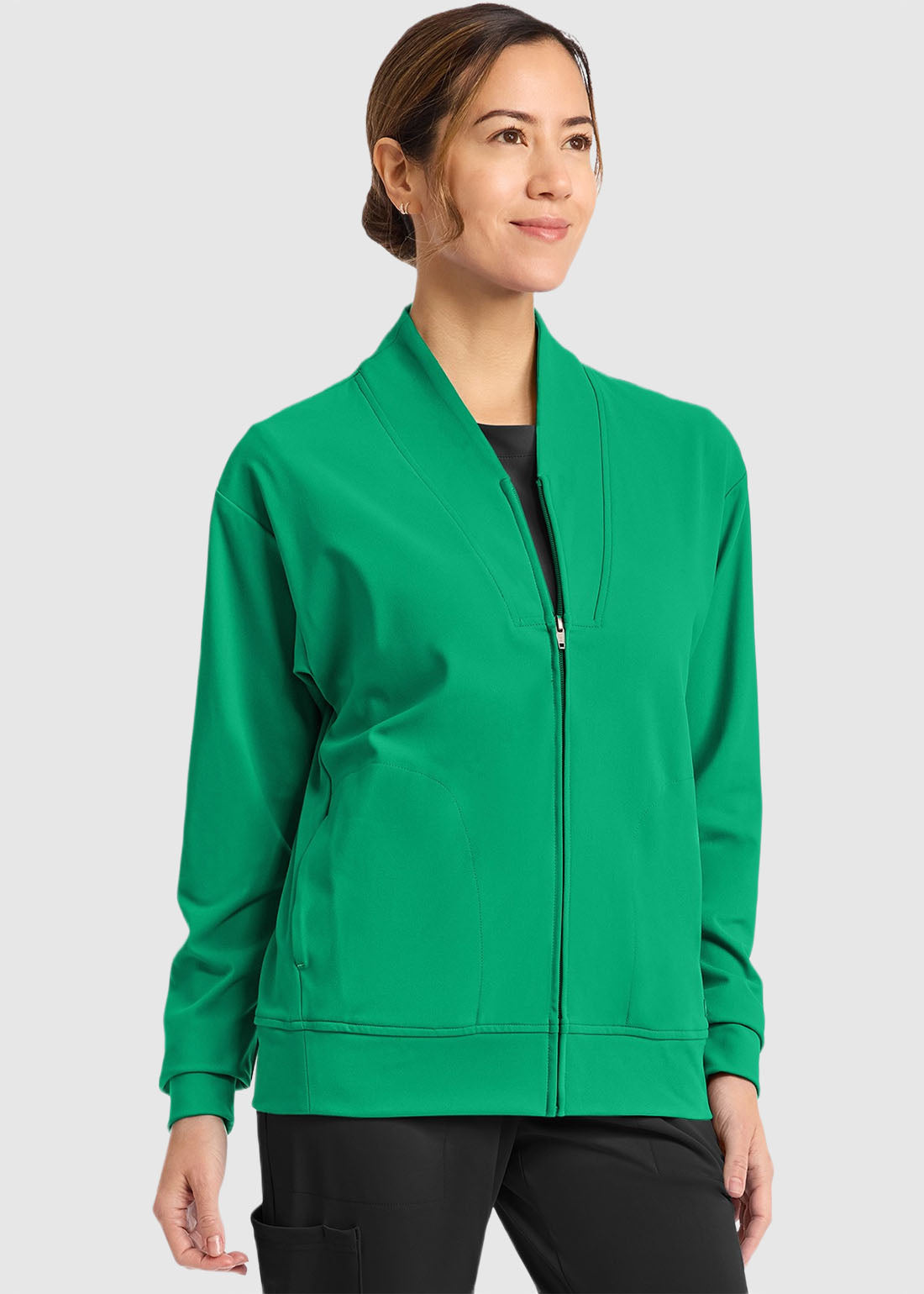 Cherokee Achieve Women's Zip-Up Warm-Up Jacket Stay comfortable and stylish with this modern classic warm-up jacket, featuring a convenient zip-front closure and two side-entry pockets for easy storage. Perfect for layering on busy days.