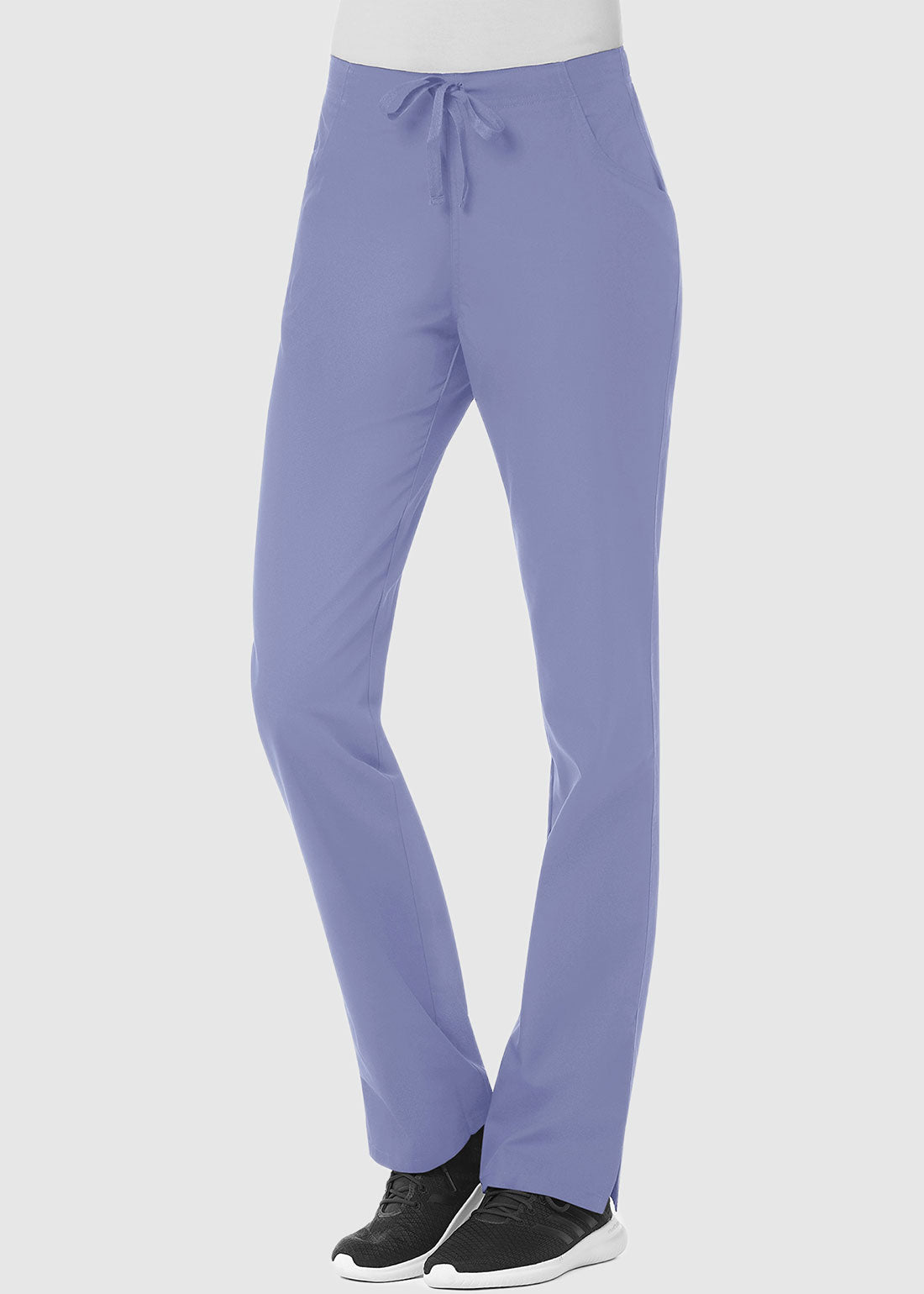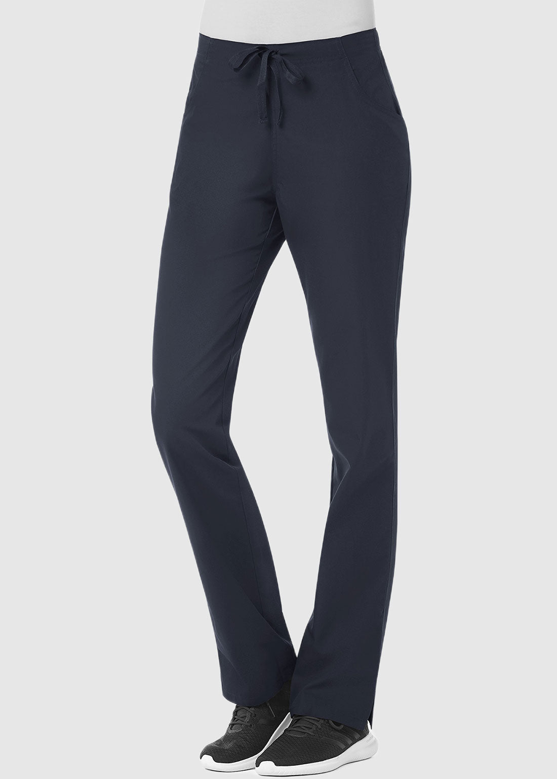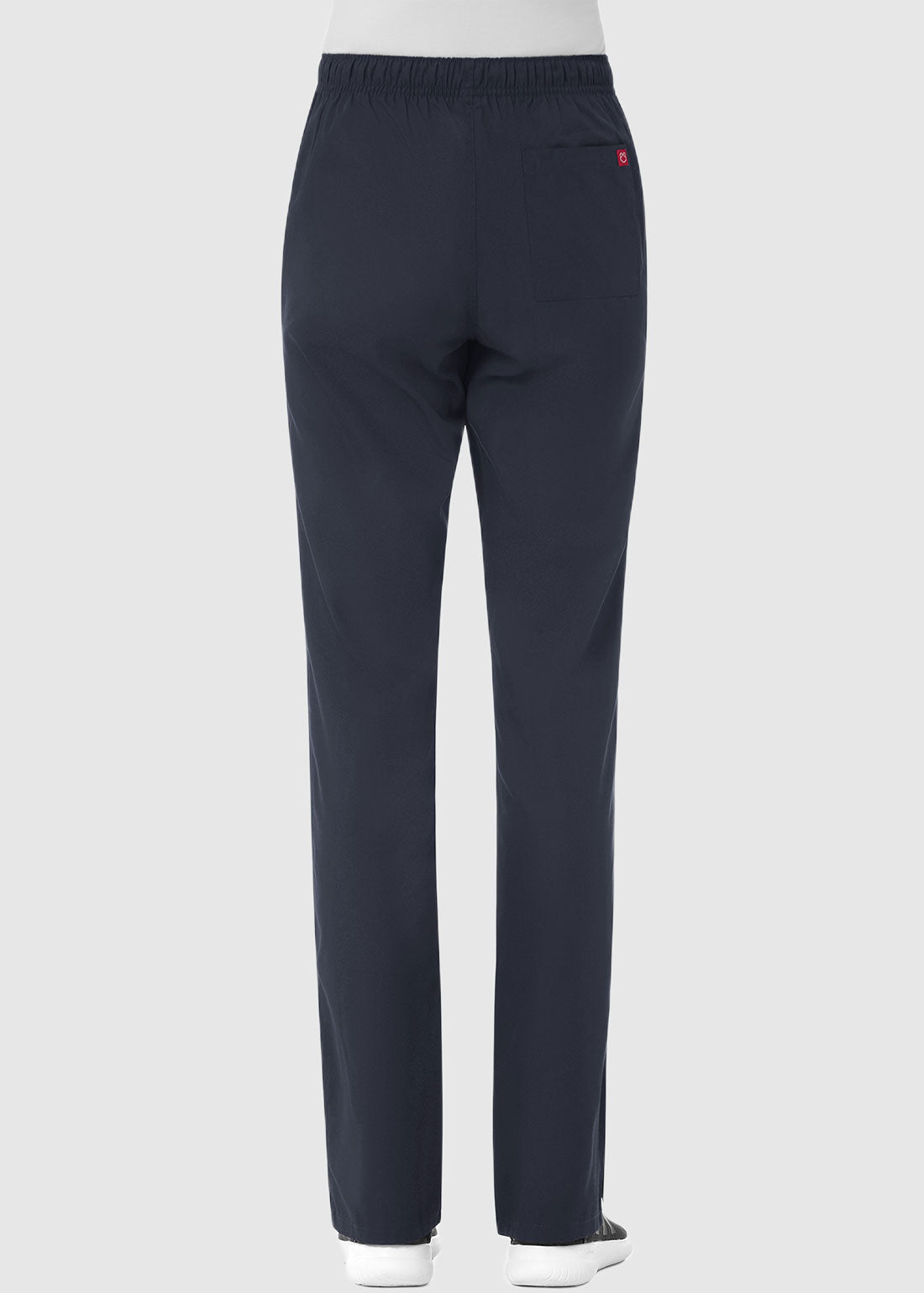 Add comfort to your tiring shifts at work with Maevn Red Panda's straight leg pants that render a contemporary fit for women with a petite physique. Featuring a half-elastic waistband with dyed-to-match drawstring for a tailored fit, the garment has two front slash pockets and one back patch pocket for secure storage.
