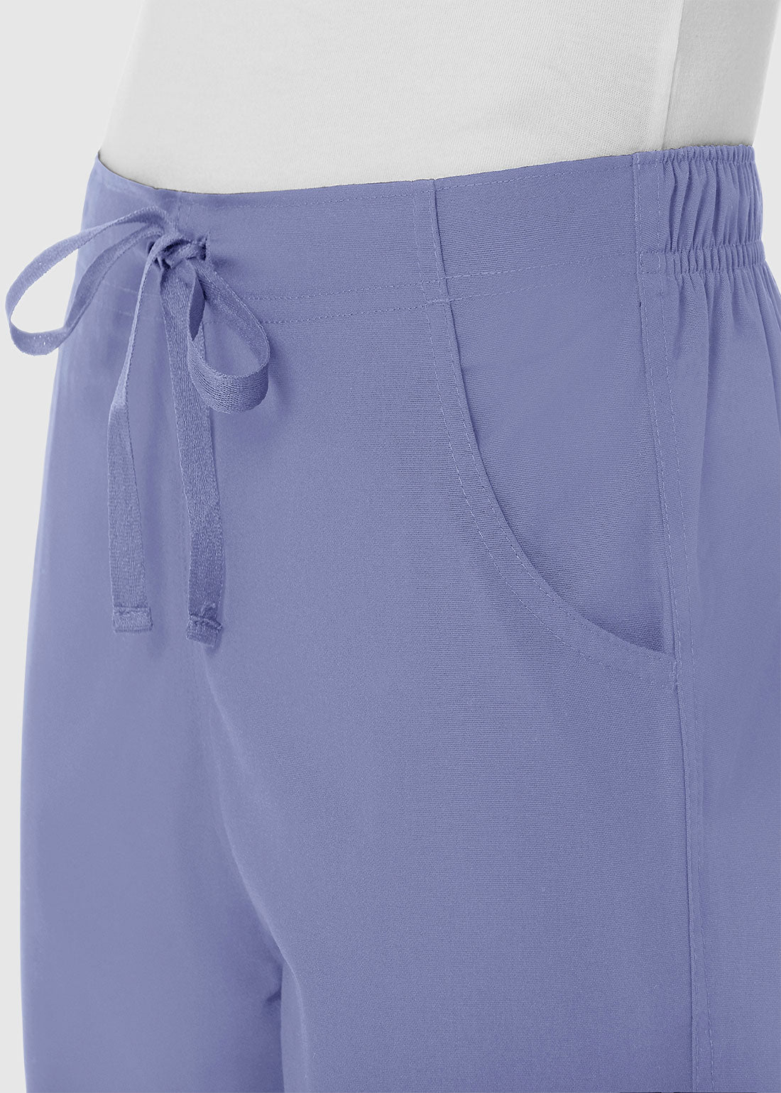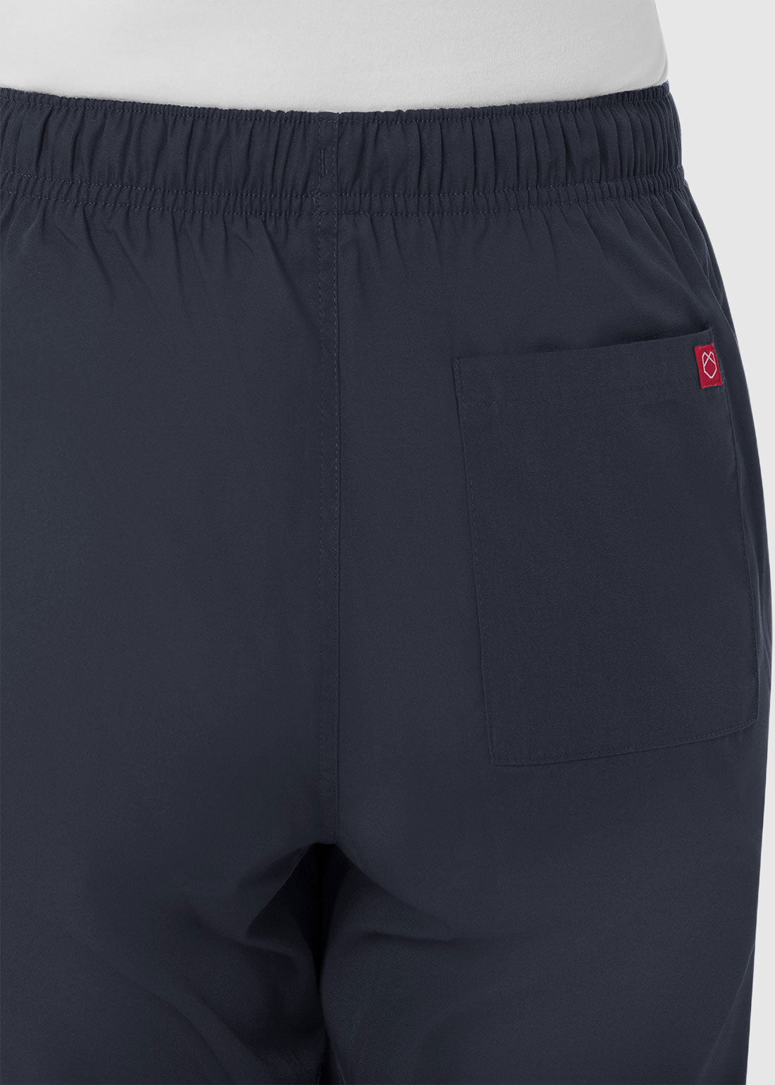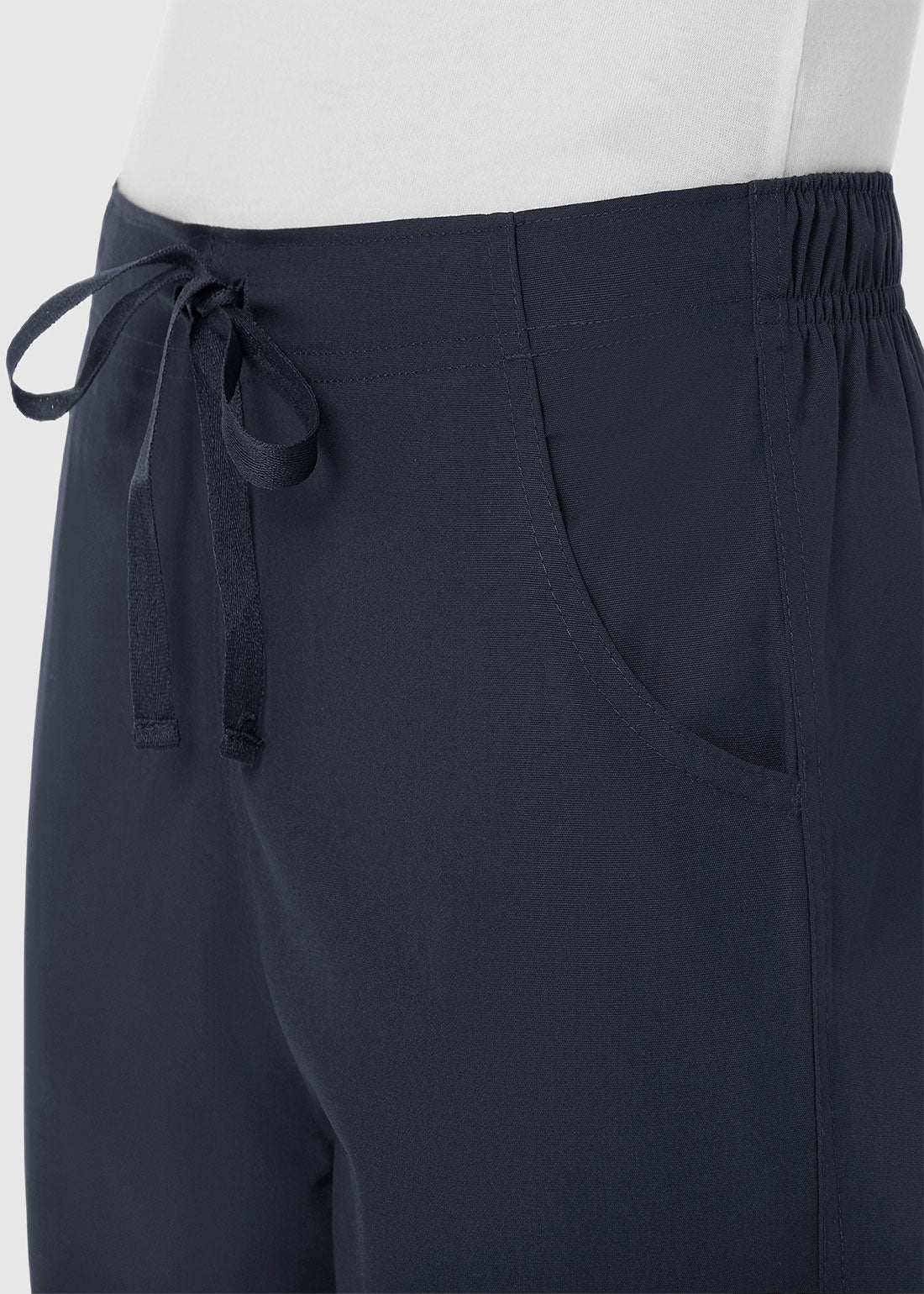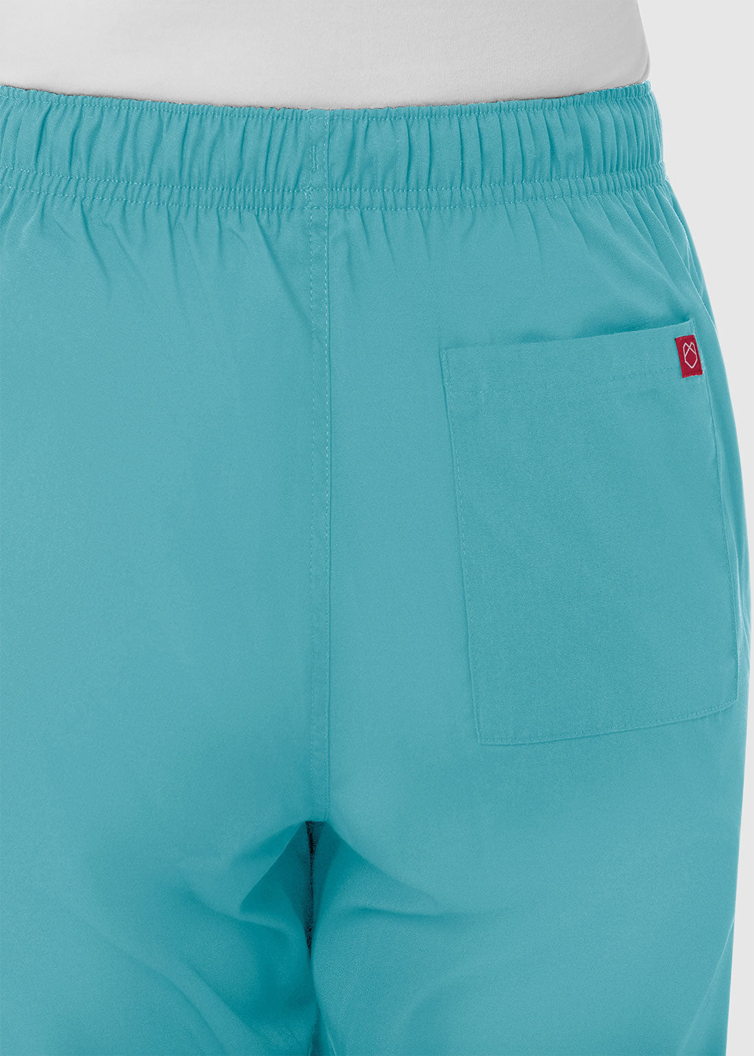 Add comfort to your tiring shifts at work with Maevn Red Panda's straight leg pants that render a contemporary fit for women with a petite physique. Featuring a half-elastic waistband with dyed-to-match drawstring for a tailored fit, the garment has two front slash pockets and one back patch pocket for secure storage.