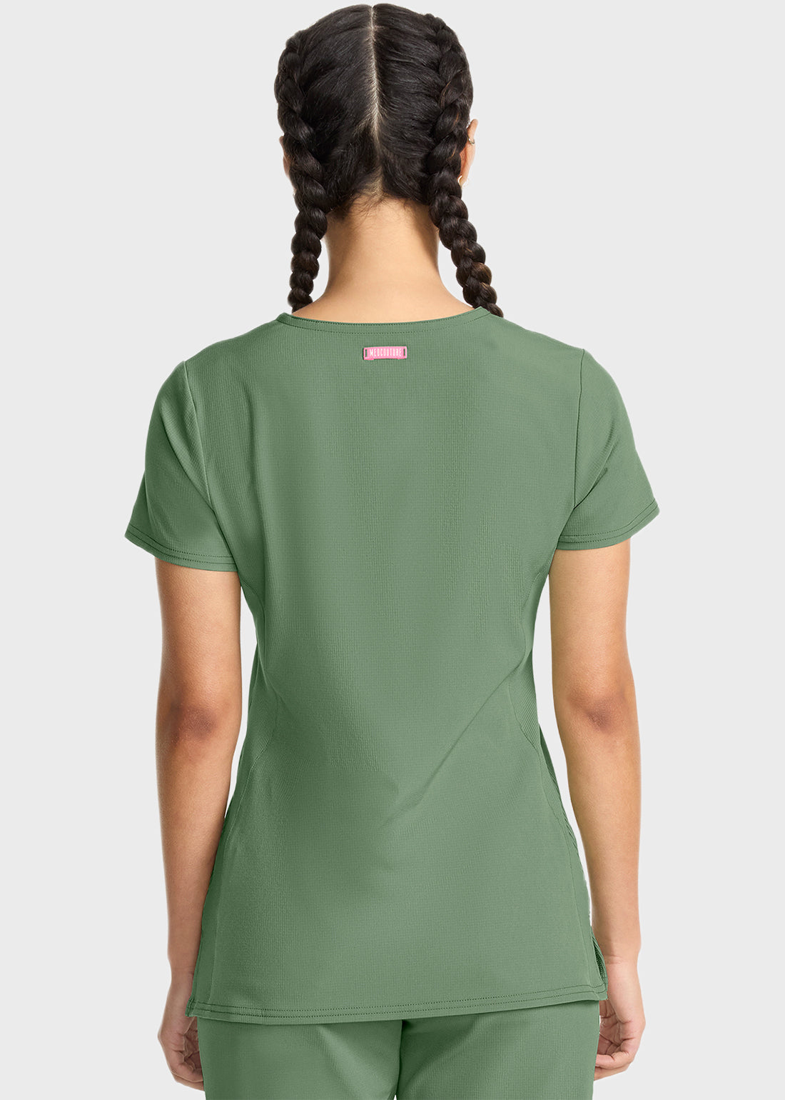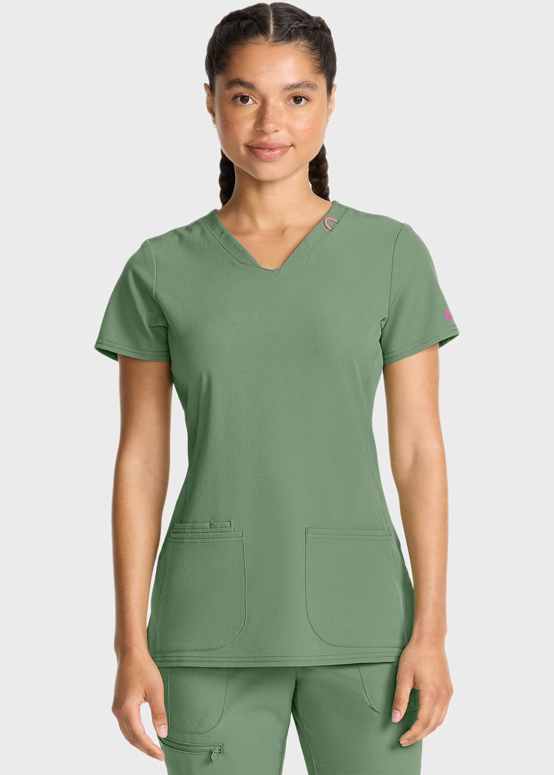 Tailored to perfection, the Med Couture Amp V-neck scrub top is effortlessly chic. With an impressive shaped neckline, instrument loops, rib-knit side panels with vents that aids in movement and three spacious pockets for storage, the scrub top is relaxed and impressive.
