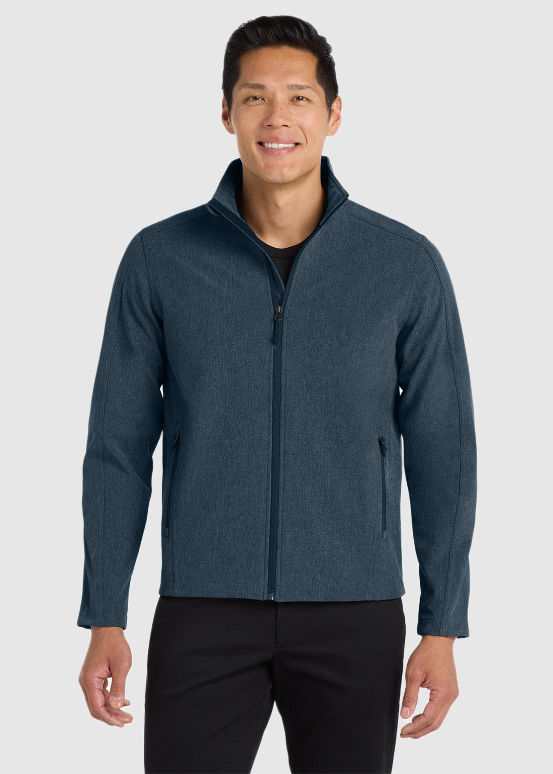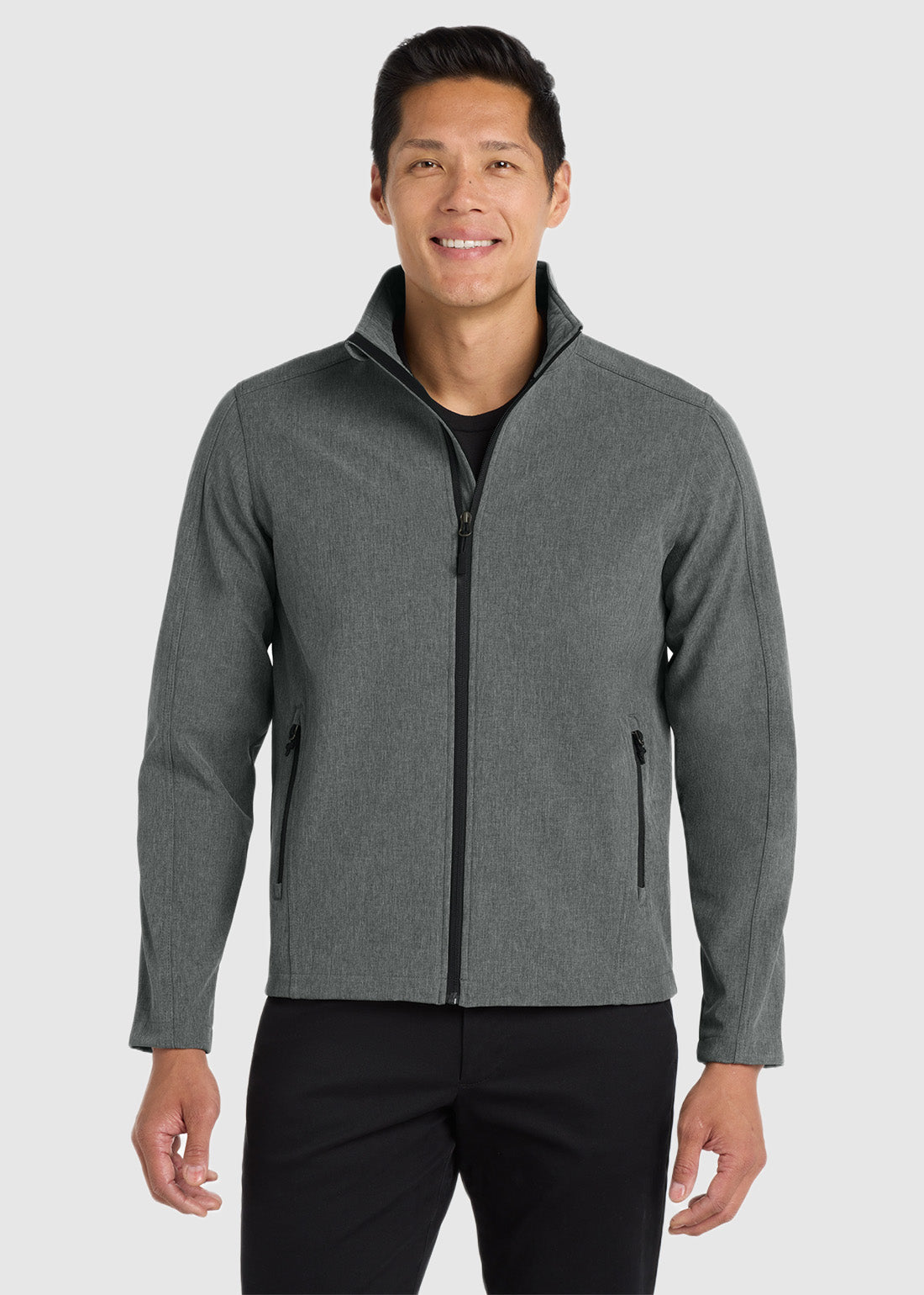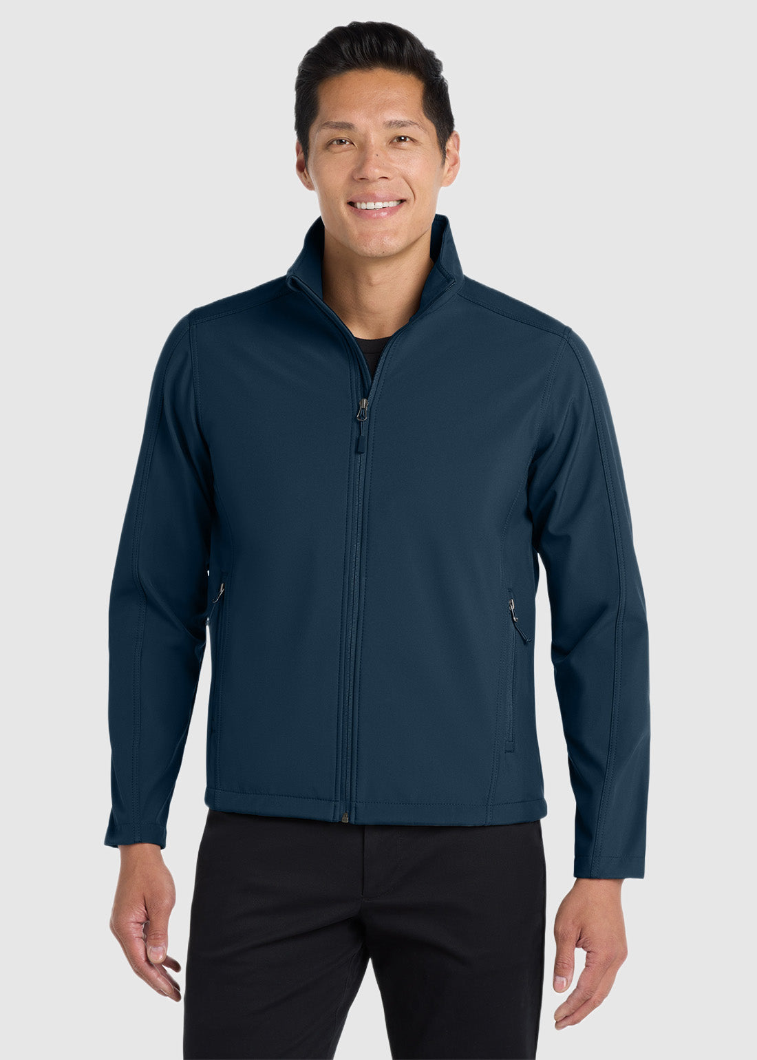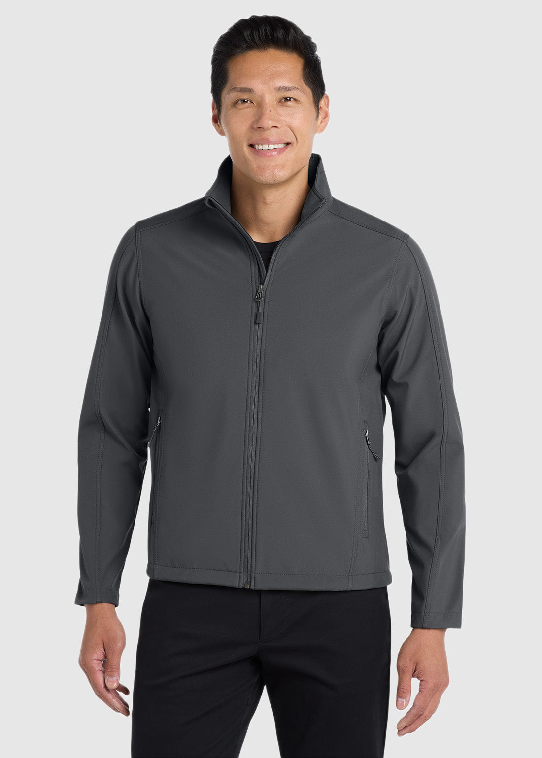 Layer up in style with Port Authority® Core Soft Shell Jacket. With a zip-through cadet collar with chin guard, reverse coil zippers, front zippered pockets and open cuffs and hem, you get style, comfort and performance on the go.