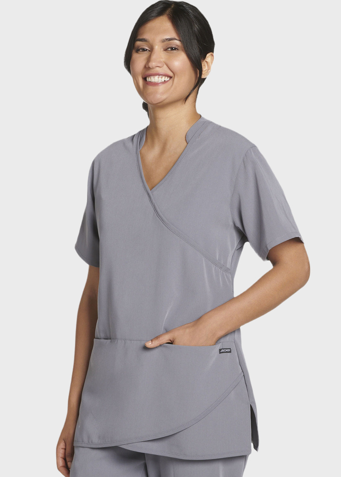 Look absolutely great with Classic Fit Collection by Jockey Womens Petal Mock Wrap Scrub Top. The modern Mock wrap neckline with modified mandarin collar looks impressive. With short breathable sleeves, two top loading pockets with added cell phone pocket and tulip hem, the scrub top is uber comfortable.
