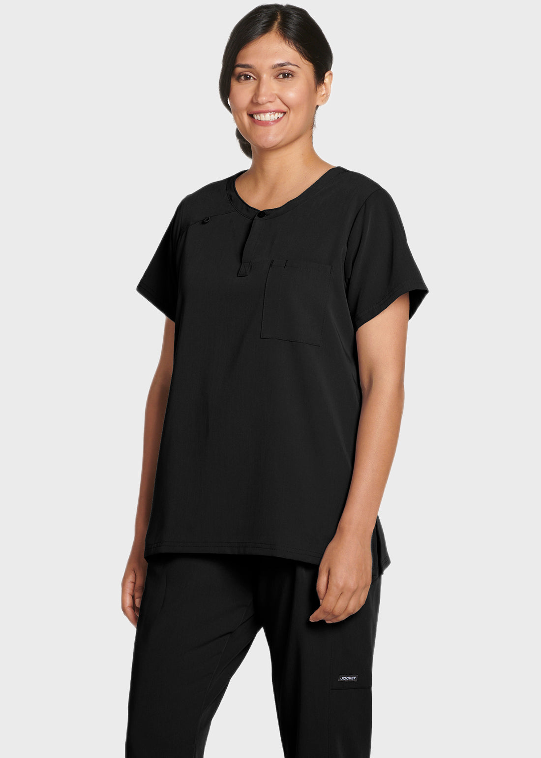 Look your best and feel at ease with Classic Fit Collection by Jockey Womens Sleek 3 Pocket Scrub Top. The trendy top features a one button Henley neckline that looks impressive. Completed with side vents that aid in movement, and left chest pocket, two hidden side-seam pockets and elastic loop for badge, the top is a must have.