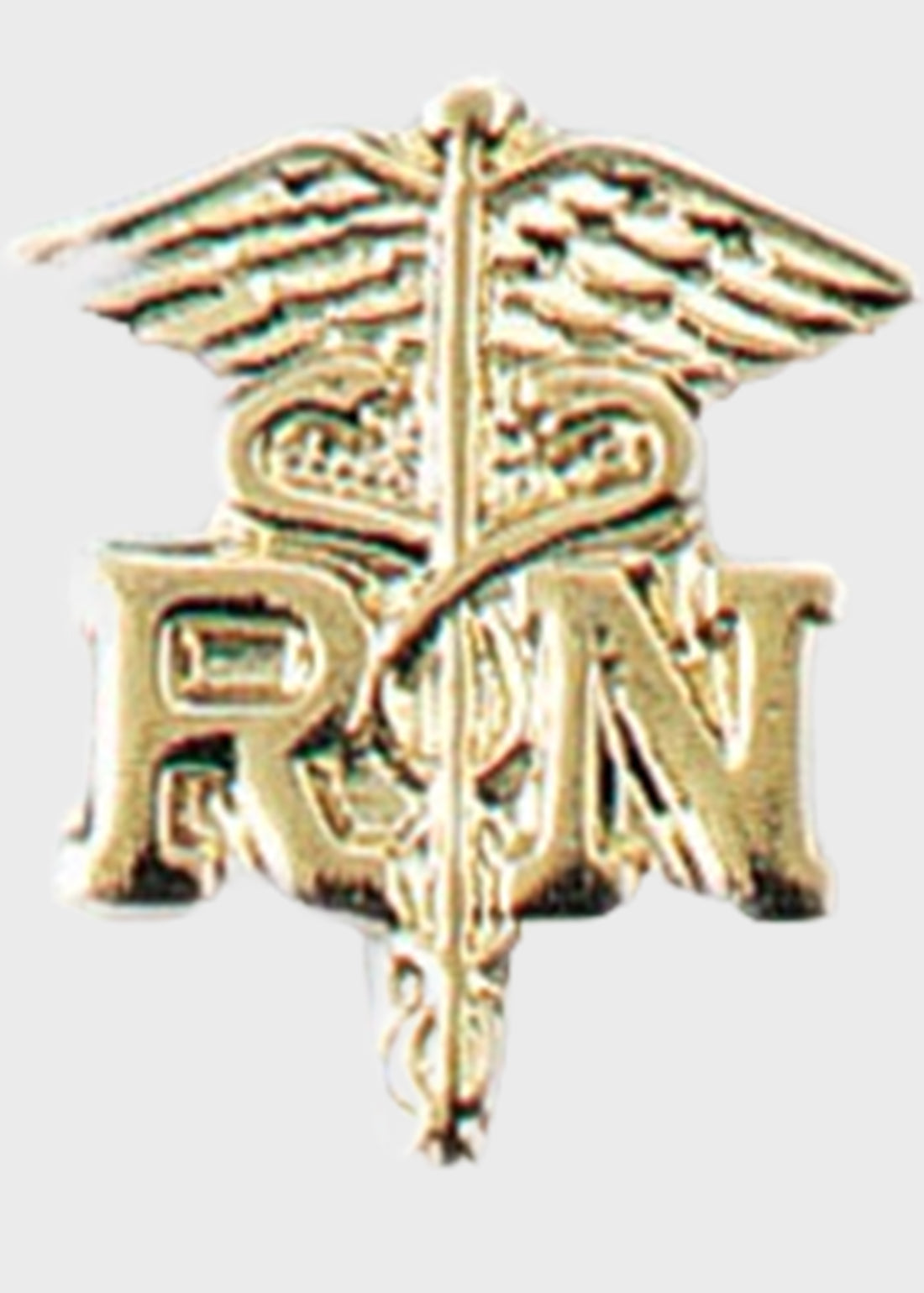 Beautifully crafted Registered Nurse Caduceus is gold plated emblem pin. It is available in two per package.