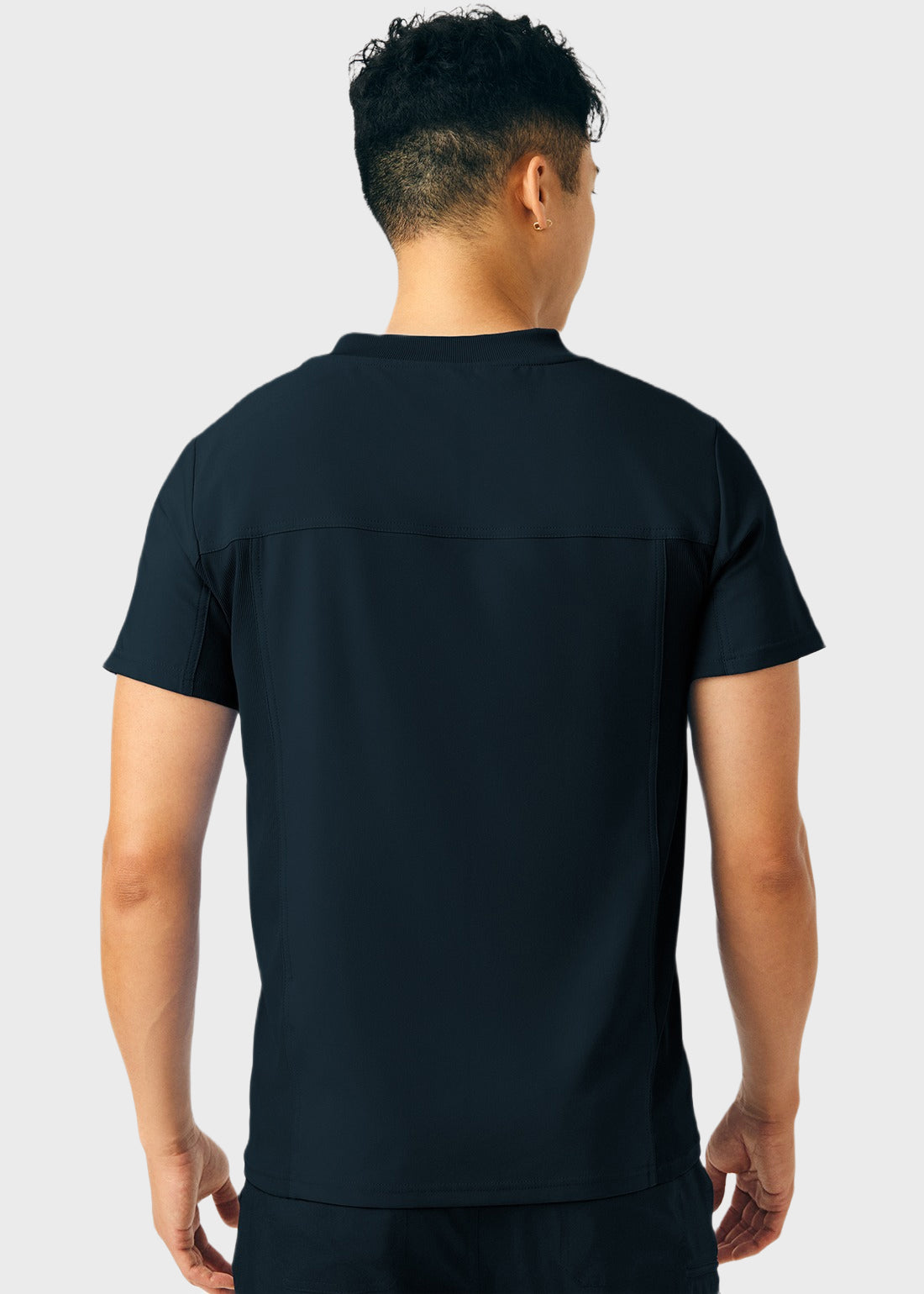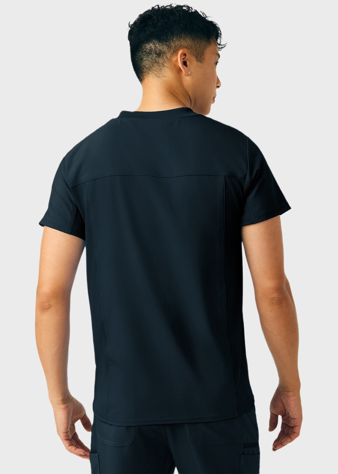 Make an impression at your workplace with Landau Forward Men's 2-Pocket V-Neck Scrub Top. Featuring a relaxed V-neck.rib-knit neckline and side panels for extra mobility, shoulder bungee loop, back yoke for a flattering shape, short sleeves and two spacious pockets including one chest pocket, and one zipper chest pocket, the scrub top is a must have.