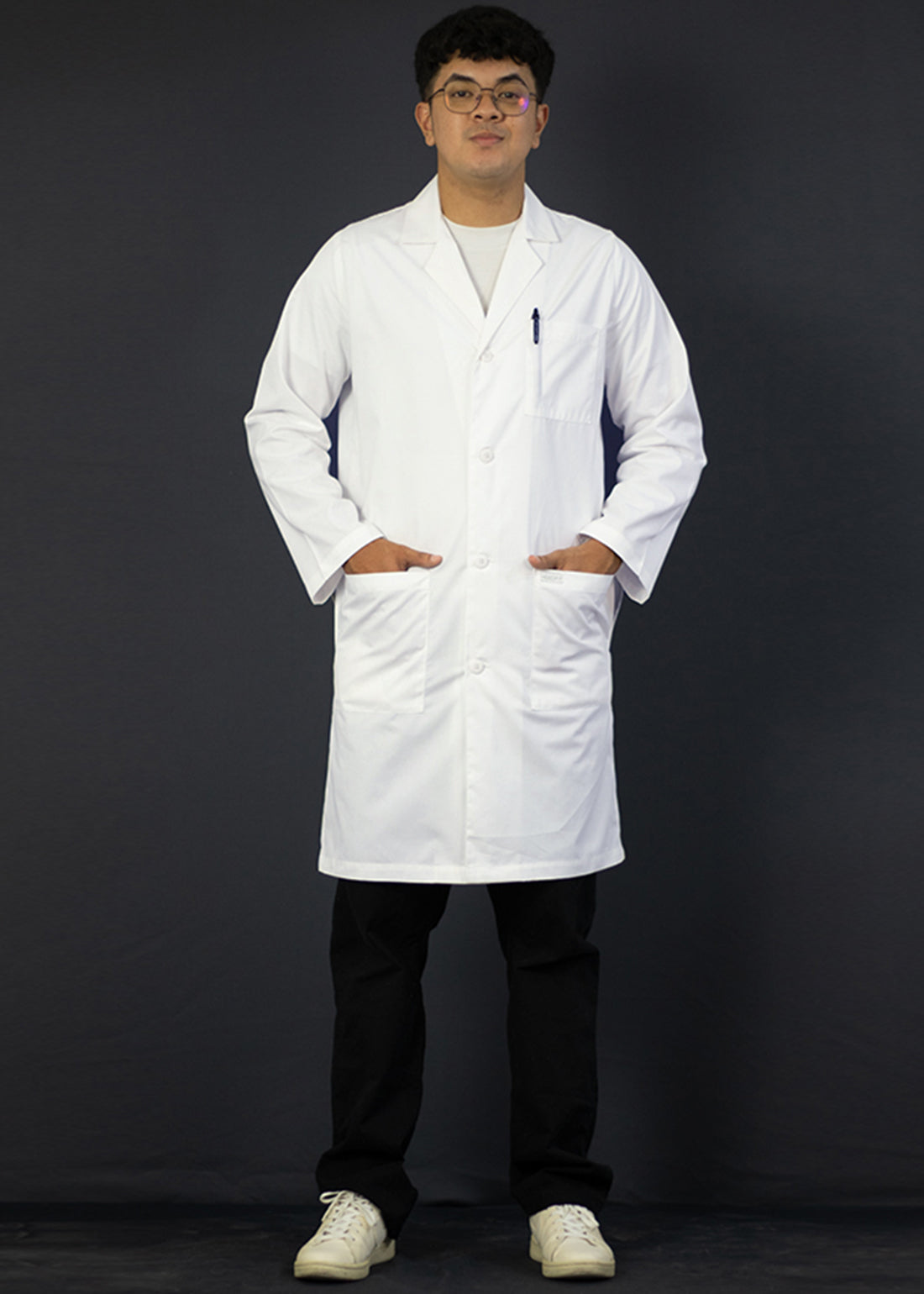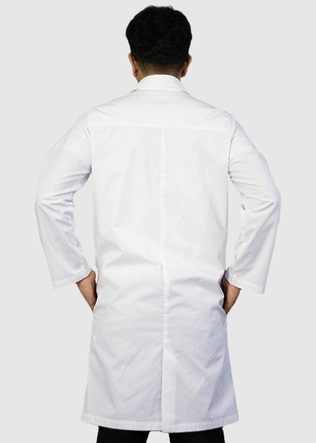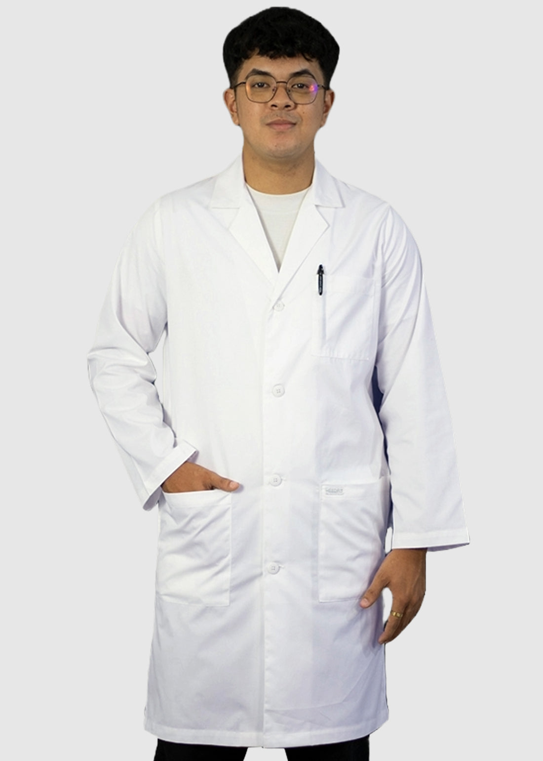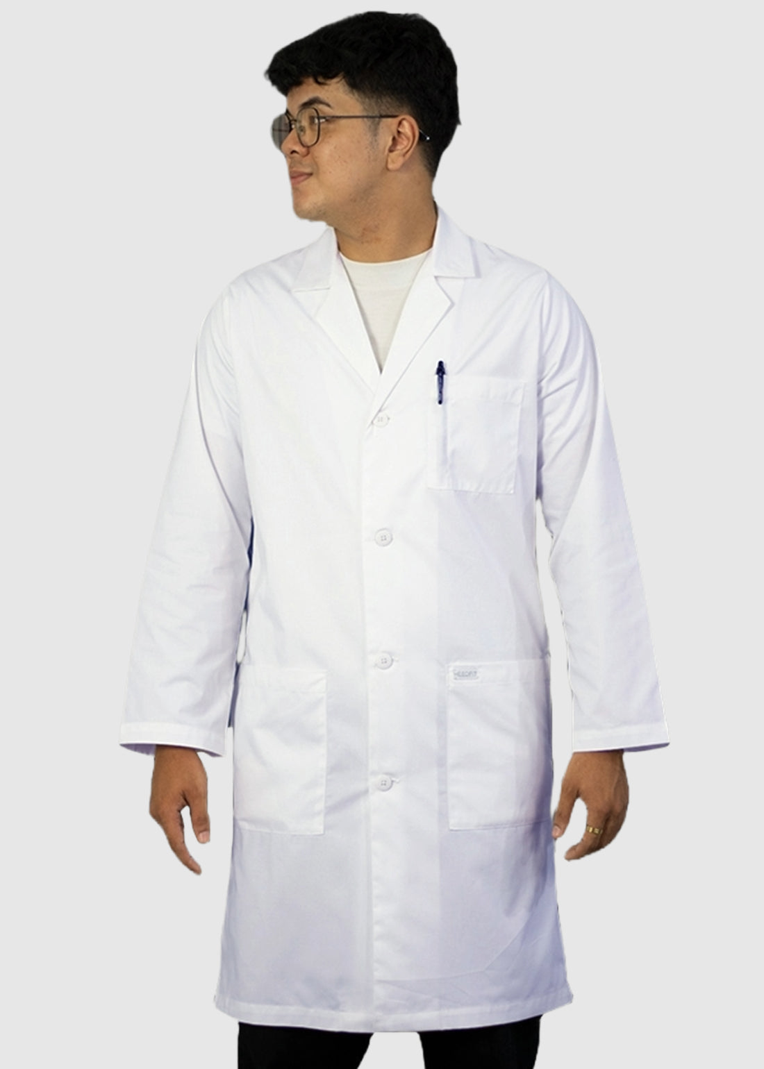 Make an impression, look professional and feel great in HeedFit 1101B unisex 40 inches long white lab coat with inner pocket. Meticulous crafted, the functional lab coat features an easy to wear four button closure. Completed with two spacious patch pockets and one chest pocket with pen slot and one inner pocket, the lab coat comes with vented back and side access for superior functionality on the go.
