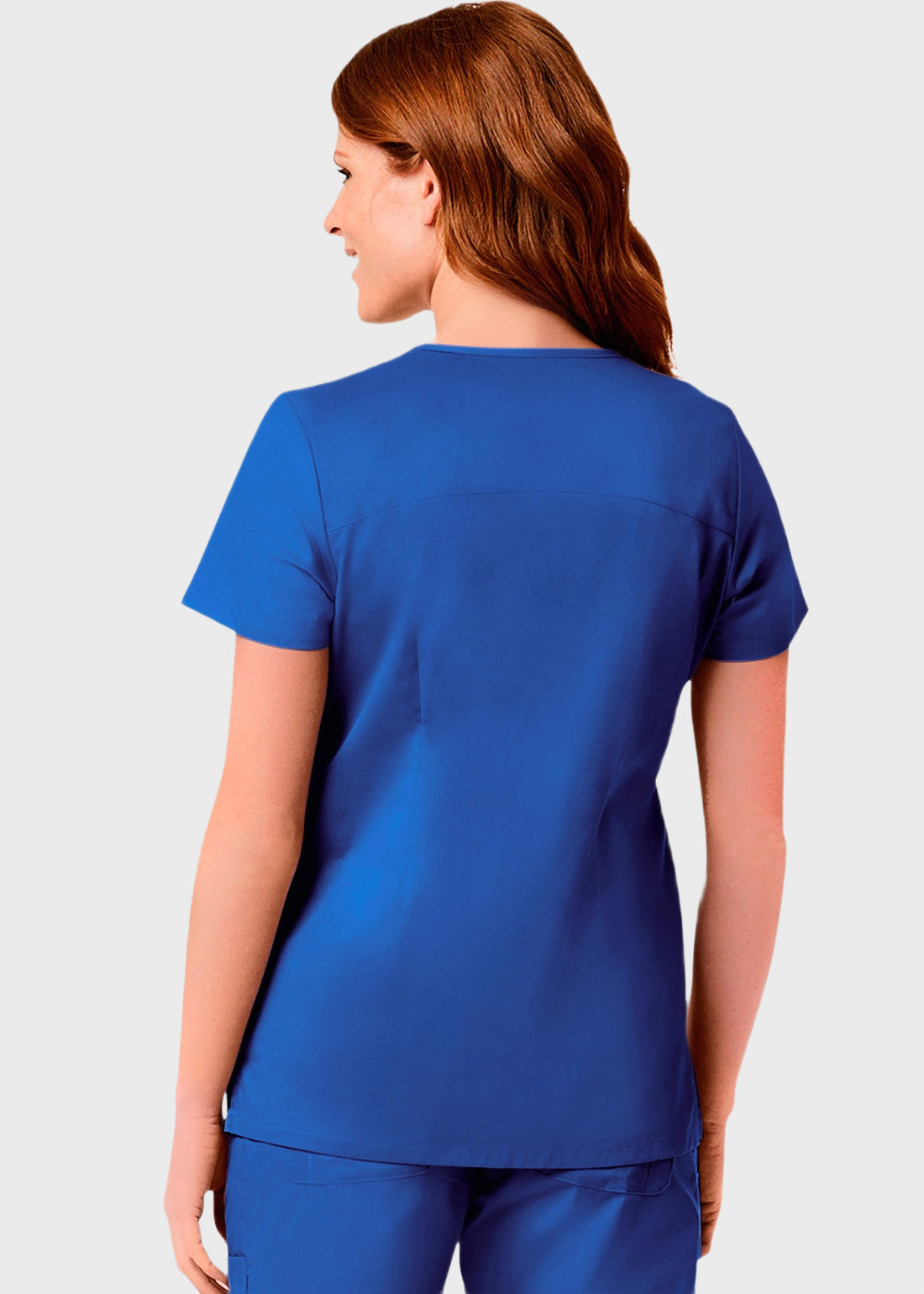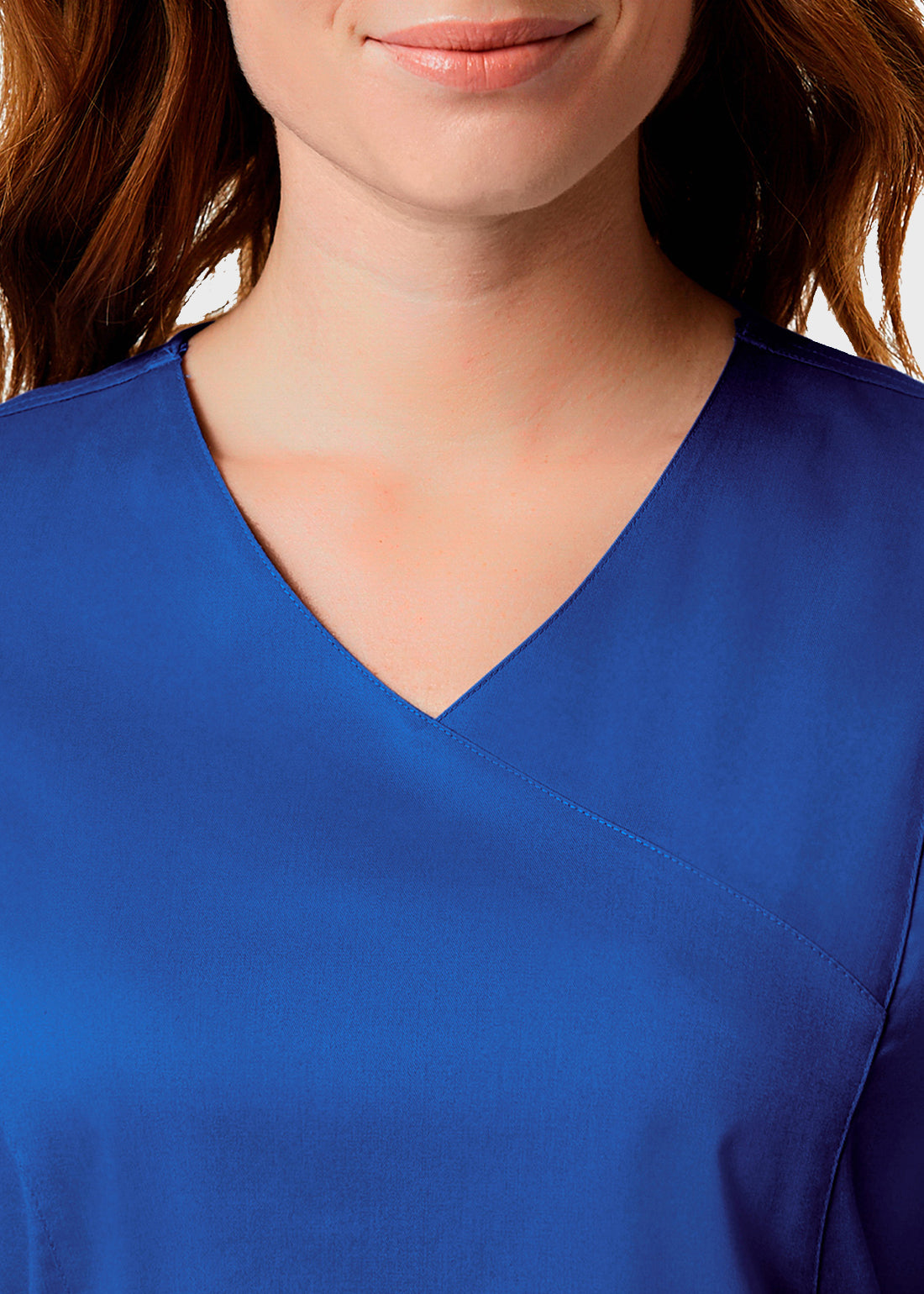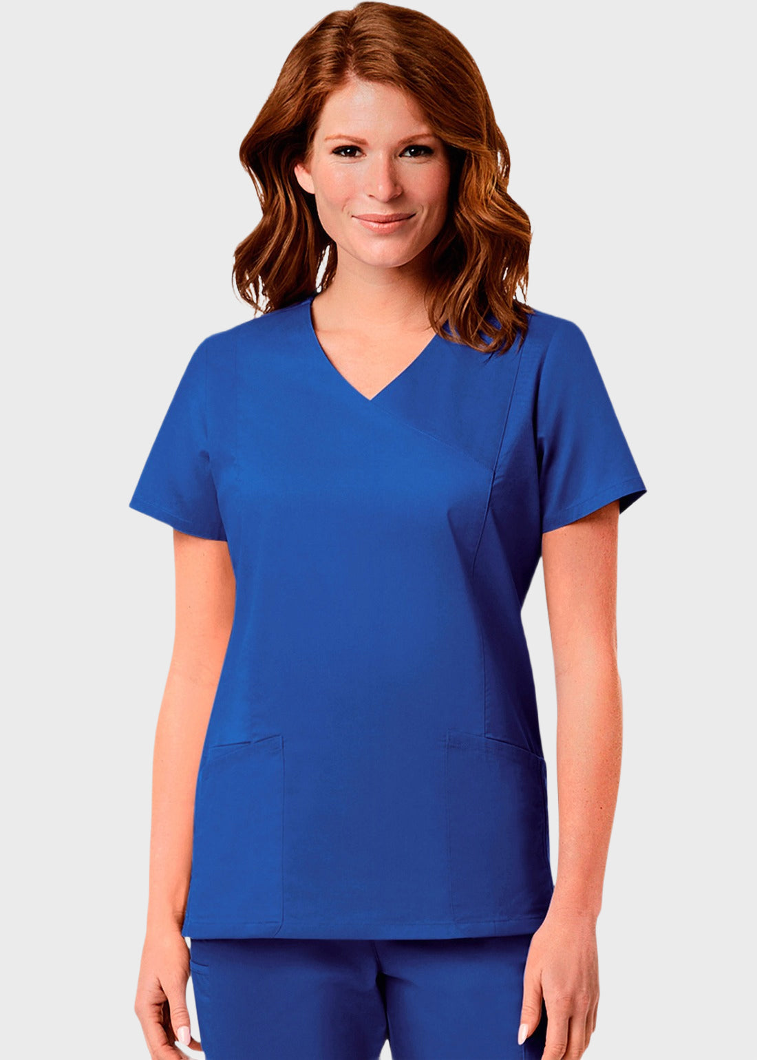 Look adorable with no compromise on your professionalism with Maevn 2102 Women's Signature Mock Wrap Solid Scrub Top. Ideal to keep your essentials in place, the crossover mock wrap v-neckline, with short sleeves is a trendy addition to your work attire.