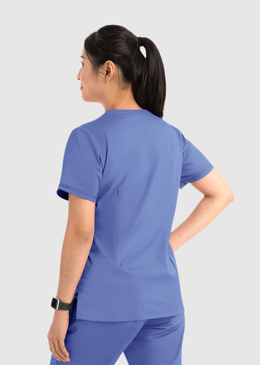 Dress smartly to work in Maevn V-neck women’s scrub top. The women’s colored scrub top looks great and feels better. Known for its superior quality, the top is a must have.