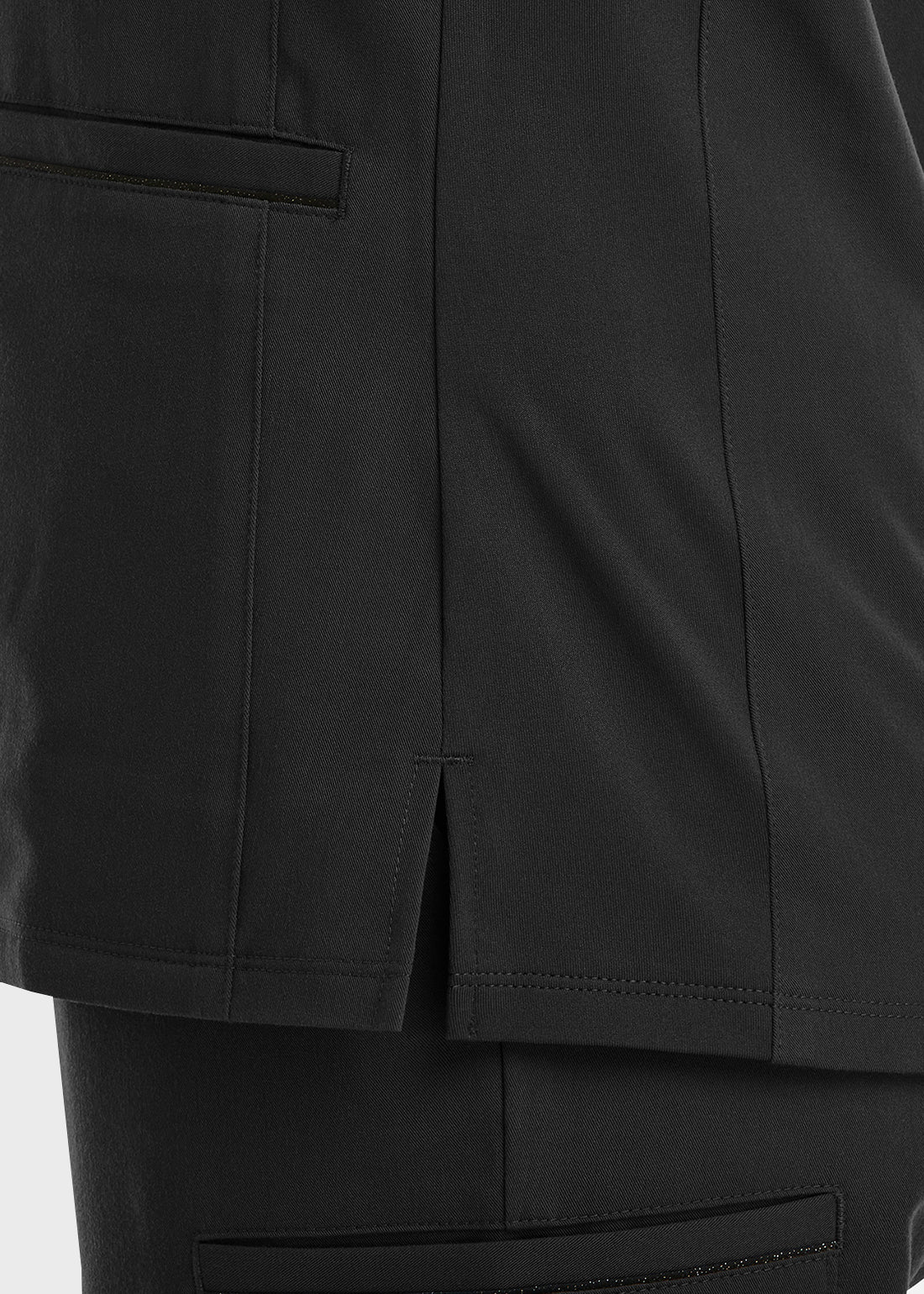 Dress comfortably and feel great In Maevn Matrix Pro - Women Active Knit V-neck Top. The women’s curved V-neck top looks great, two front welt pockets with decorative contrast piping for safe storage, dyed-to-match micro-knit panel at side seam and dyed-to-match functional utility loop at the shoulder, get style and comfort on the go. Completed with side vents, the top is a must have.