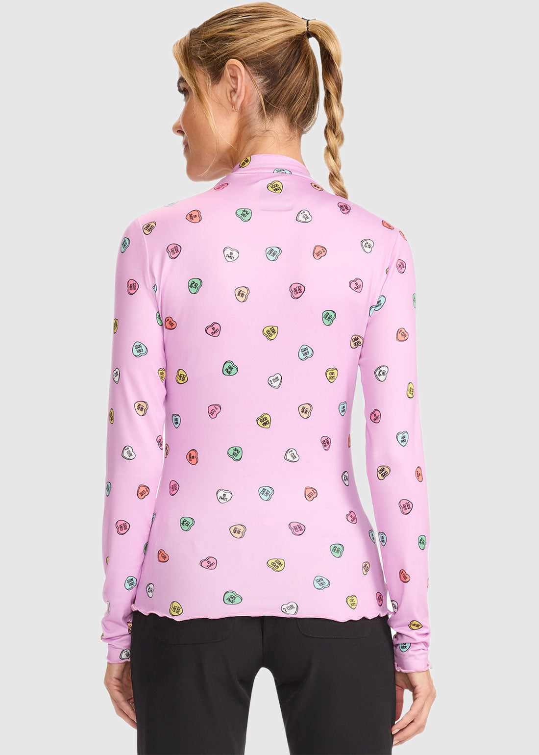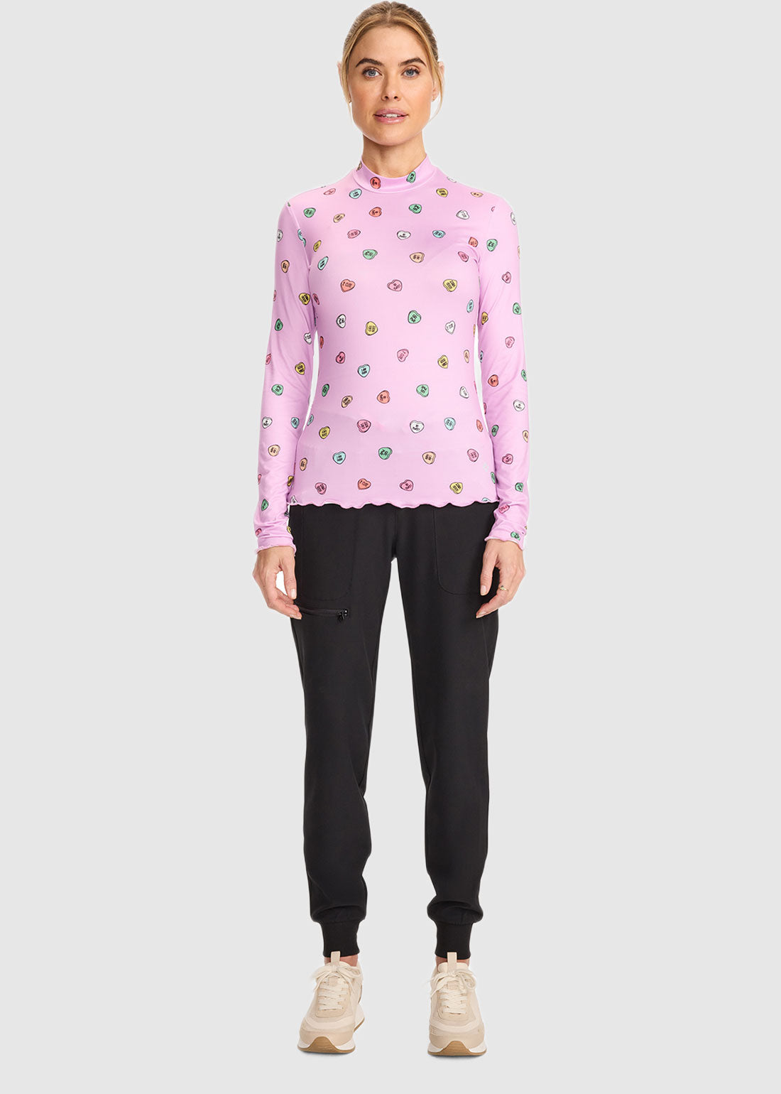 Merrow Edge Mock Neck Underscrub in Sweet Talker offers a stylish and comfortable missy fit. Designed for layering, its mock neck and delicate merrow edge detailing add a chic touch to your workwear.