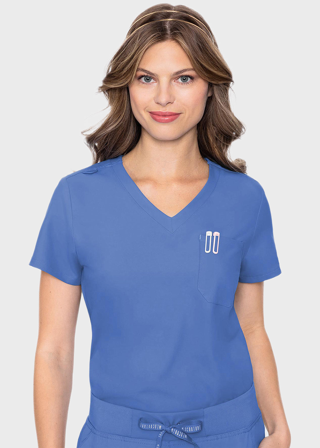 Stand out in this stylish one-pocket top. With a bungee ID loop for your badges and split sleeve for style, you can tuck it in for that polished look. Missy fit. Center back length: 27".
